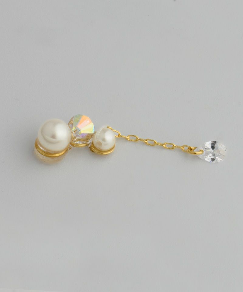 パールとクリスタルのイヤーカフ風