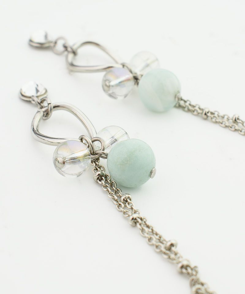 優しい色合いのターコイズが爽やかなロングチェーンピアス。