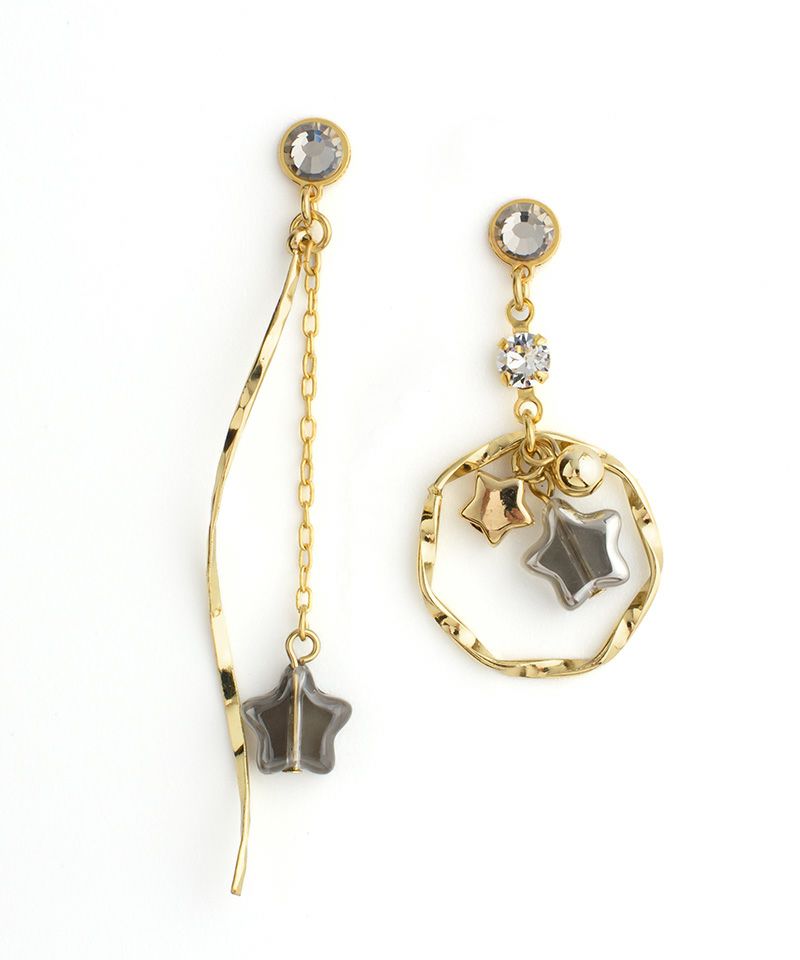 スタービーズが揺れる耳元をおしゃれに仕上げてくれるアシンメトリーデザイン。