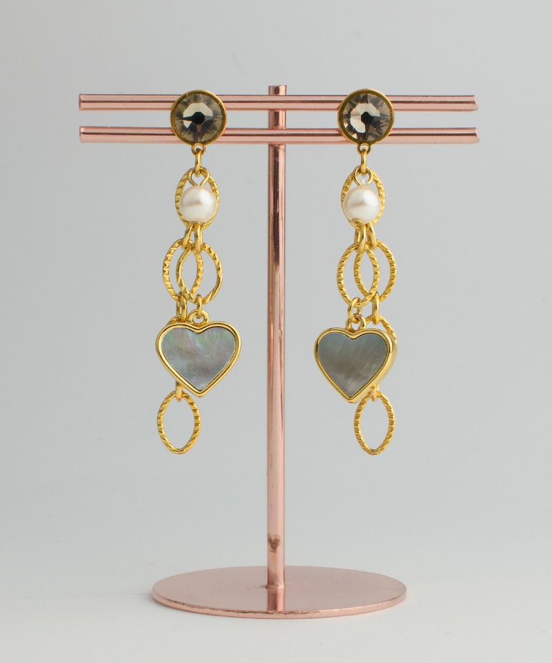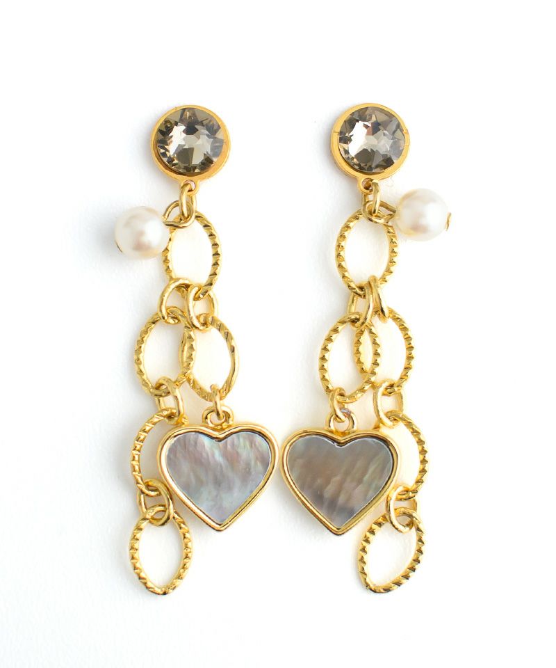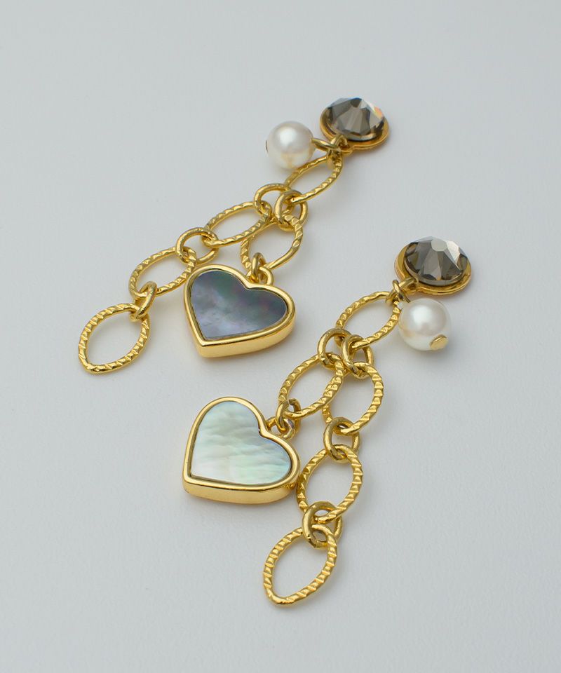 ハートのアバロンシェルとチェーンの組み合わせで甘くなりすぎずコーデに取り入れやすいです!