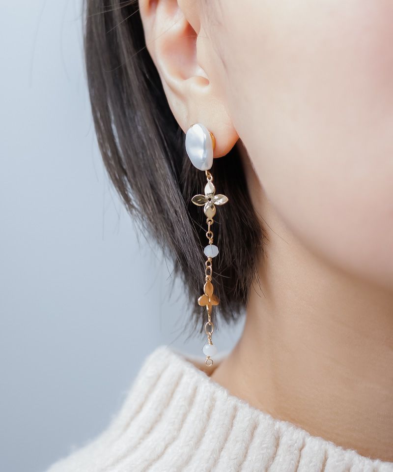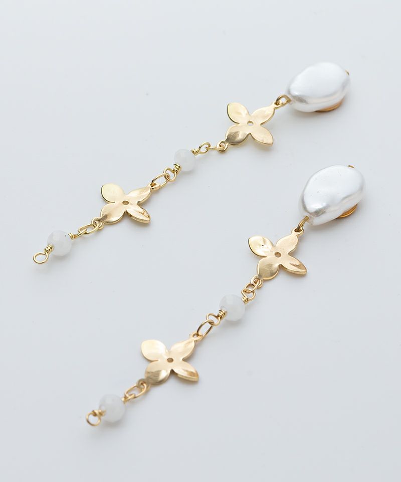 ニュアンスパールのトップに連なったメタルフラワーが存在感のあるアイテム!