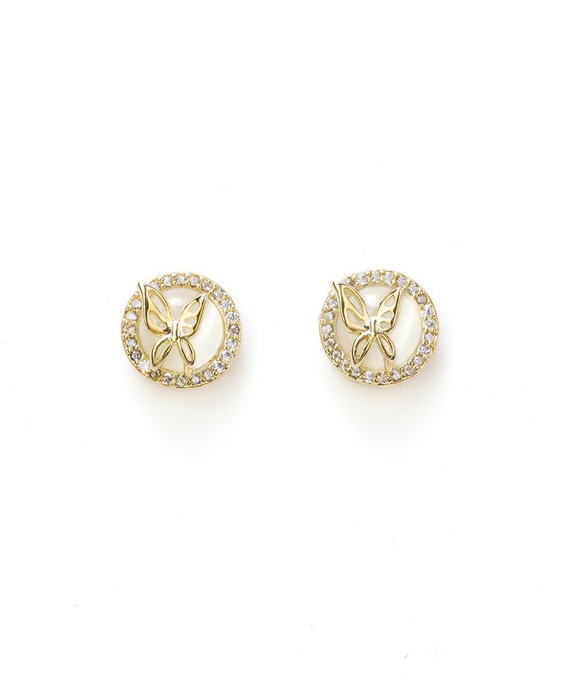 つやのあるストーンにバタフライがあしらわれたワンポイントのデザイン!