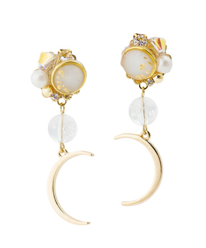 大粒ビジューの幻想的な輝きと、クレセントムーン(三日月形)の優雅な揺れ感は、どんなシーンでもコーデの主役になること間違いなし!