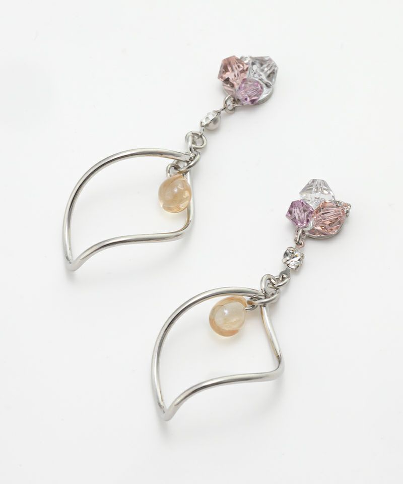 耳元のビジューと変形フープが際立っていて素敵です。 エレガントにもカジュアルにも合います。