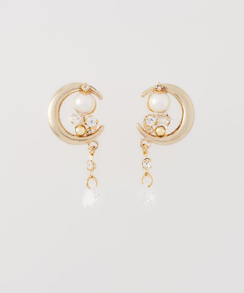 月の中にきらめくパールとクリスタルビジューが上品で華やかなアイテム。