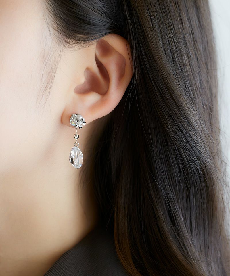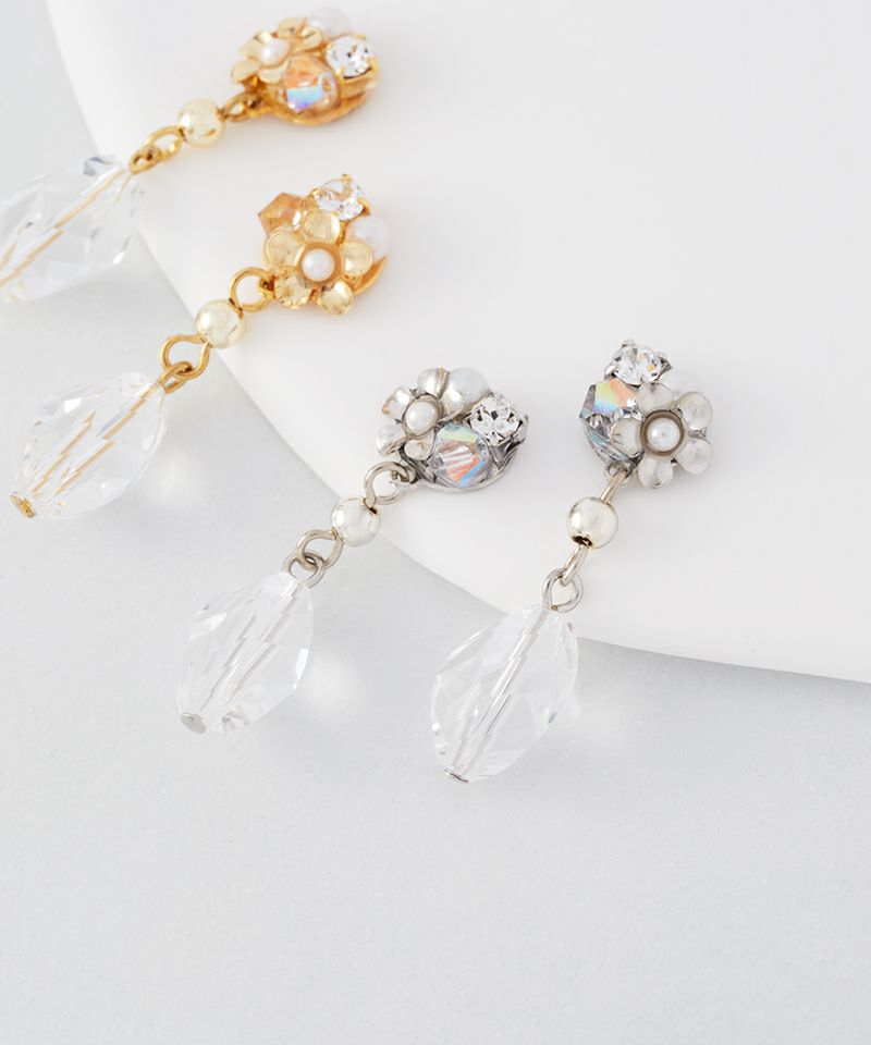 クリアストーンとトップのビジューが織りなす上品さが魅力のアイテム。