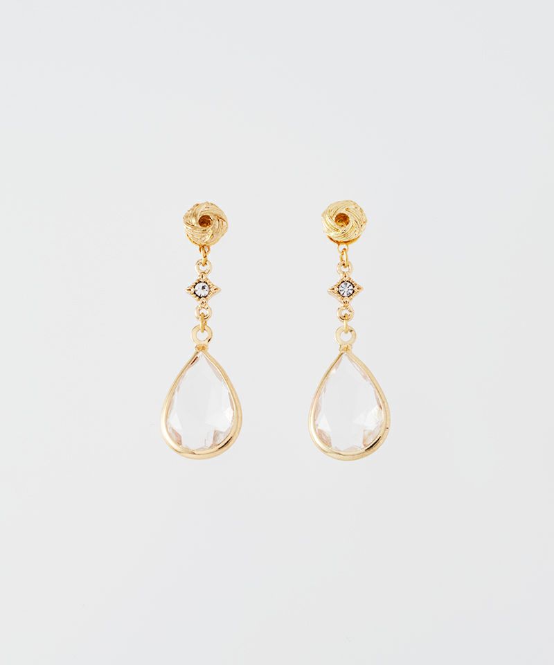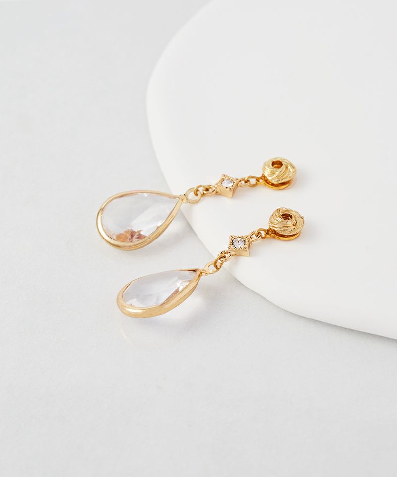 ぷるんとしたクリアドロップストーンが光を受けてやさしく反射し、まるで澄んだ雫のようにきらめきます。