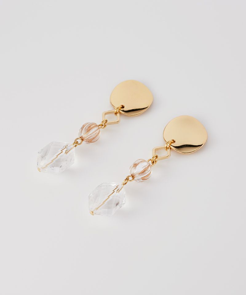 光を柔らかく通す繊細なクリアストーンとメタルプレートが重なり合う上品なデザイン。