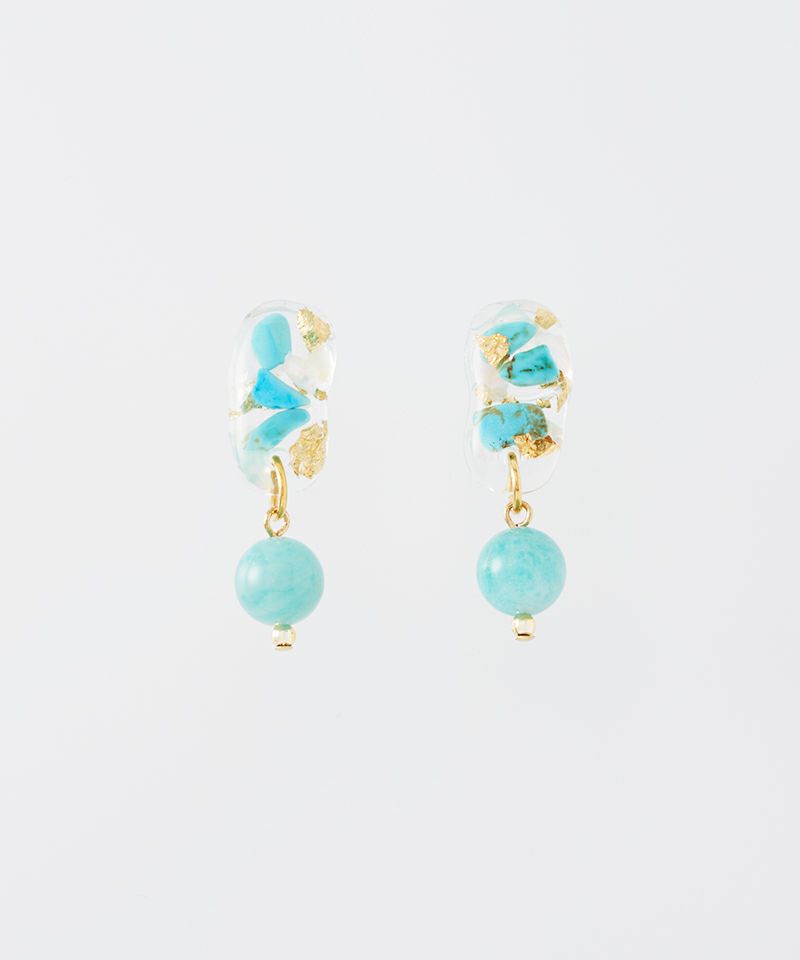 ターコイズの持つナチュラルな風合いとレジンのクリアな透明感が絶妙にマッチし、カジュアルにもリゾートスタイルにもぴったりです。