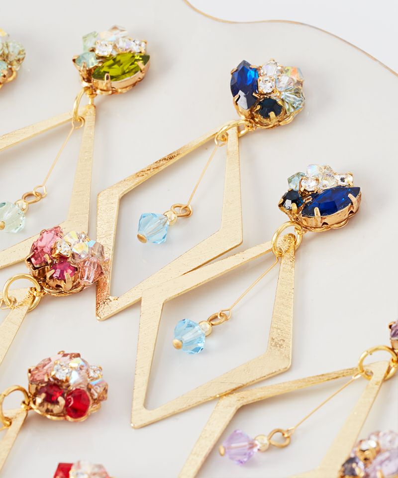 煌めくビジューが光を受けてキラキラと輝き、耳元を華やかに演出します。