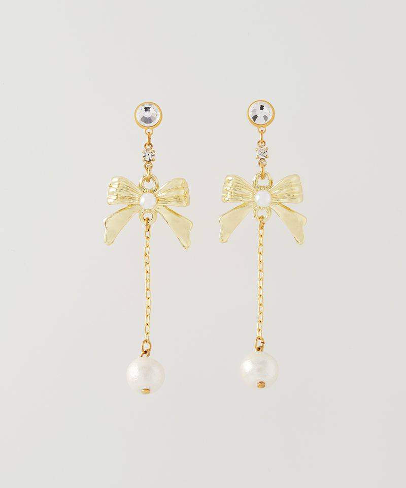 ゴールドのリボンモチーフにコットンパールをあしらい、