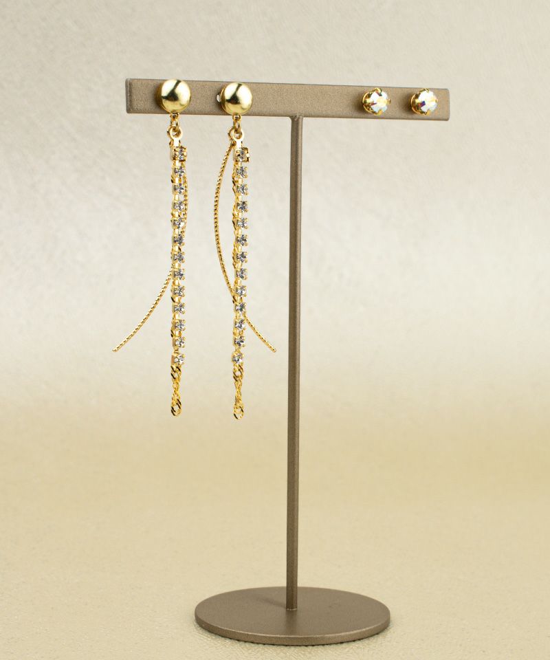 シンプルなロングタイプや1点で存在感のあるビジューなど様々デザインがセットに。