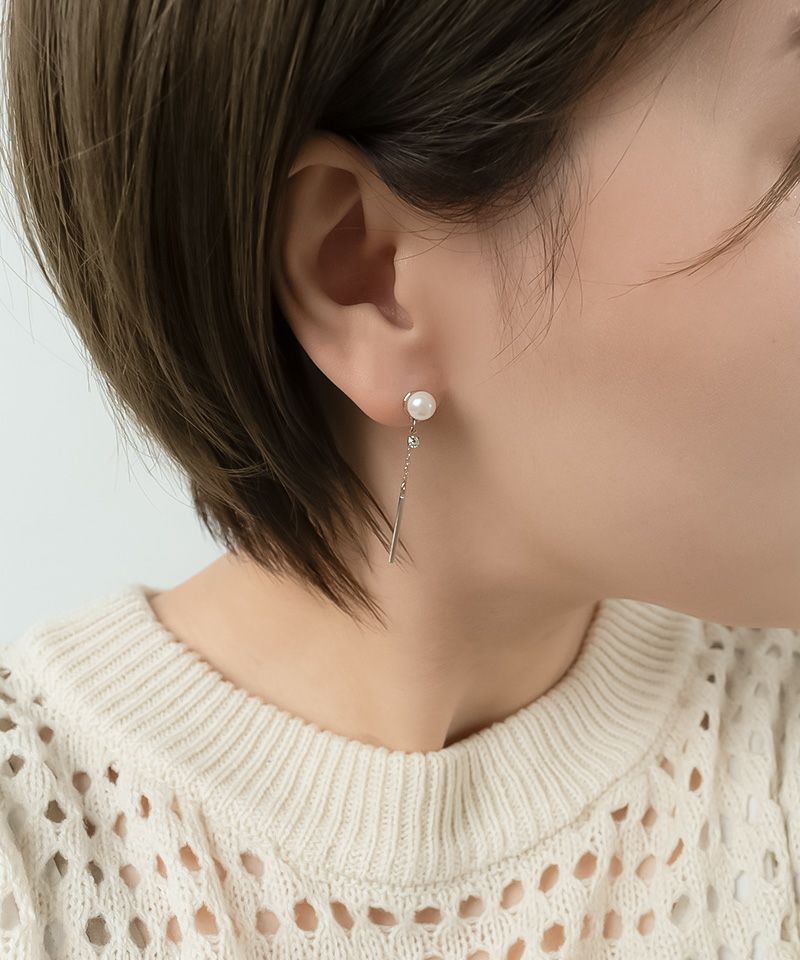 シンプルなスティックとの組み合わで洗練された耳元に。