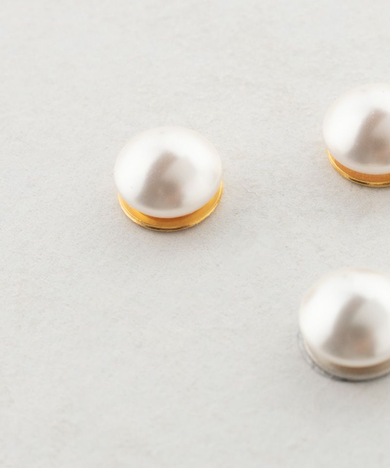 丸型小のパールを付けた所、初日で落として無くしてしまったため、丸型大のこちらを購入しました。結果、時々確認してもしっかりくっついてくれていたので、安心感が違うな!と思いました。 私はゴールドを購入しました。ベーシックで丁度良い大きさなので色んな場で使い易いと思います。程よい艶感で上品な印象です。