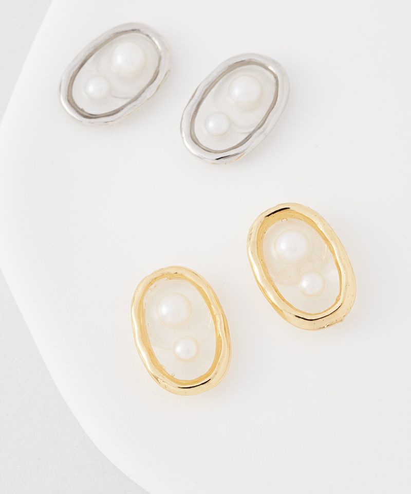楕円形のクリアレジンにそっと添えられたパールが上品さをプラスします。