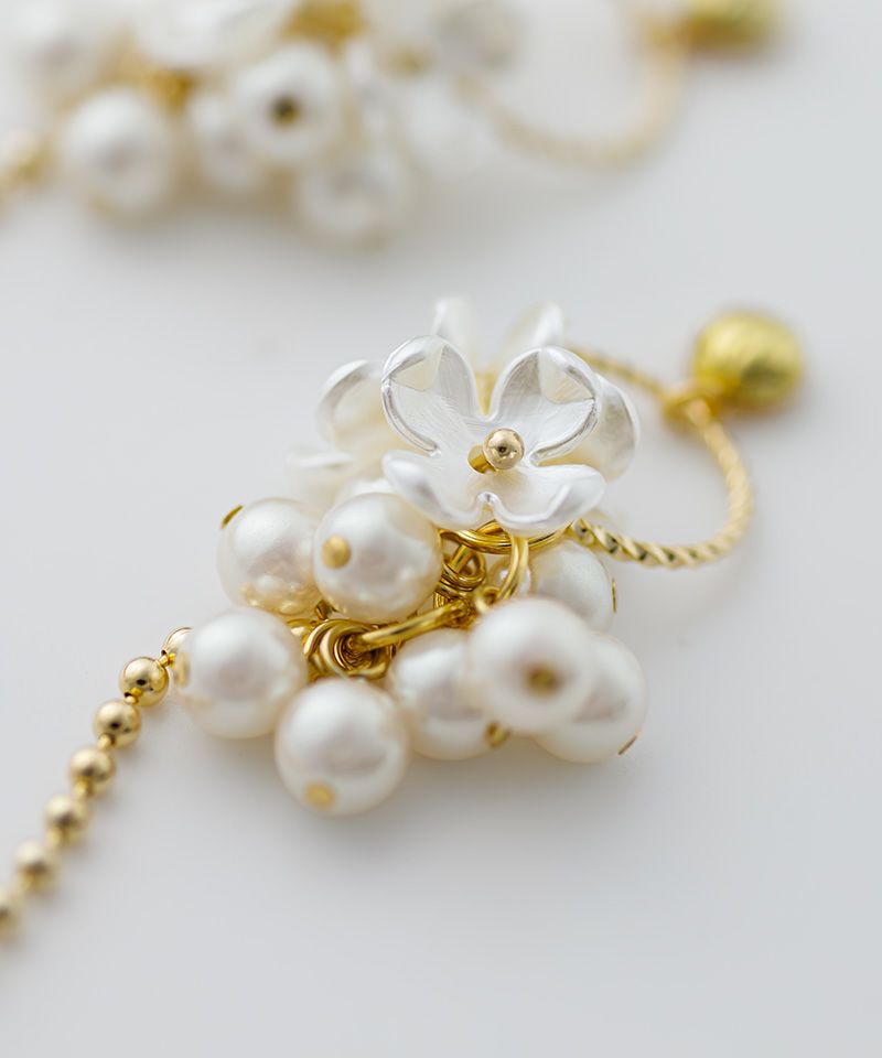 つぶつぶパールのフラワーメタルチェーン