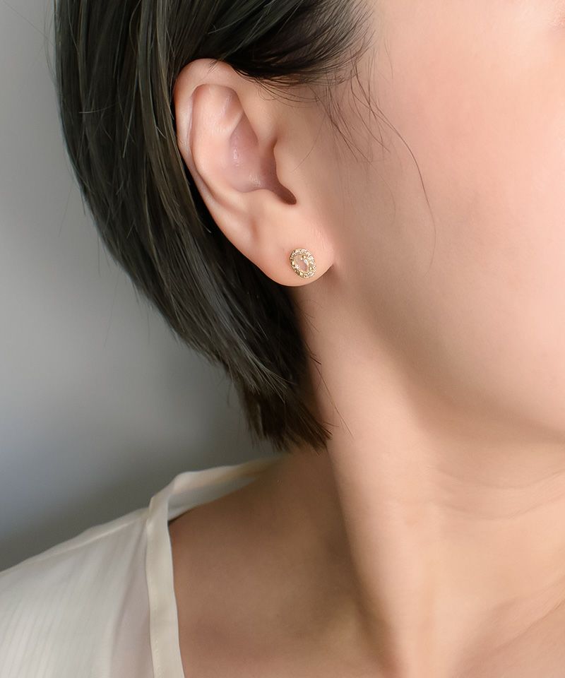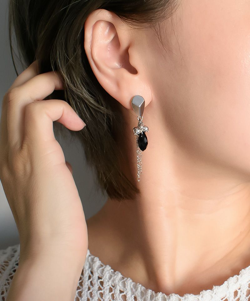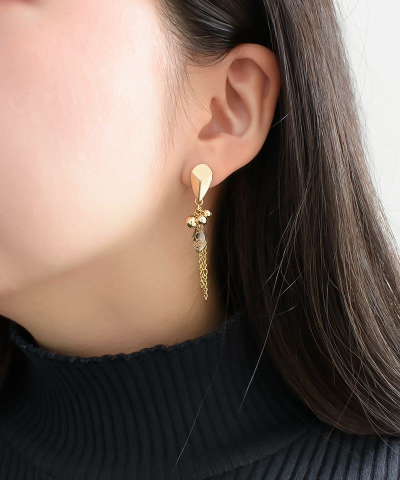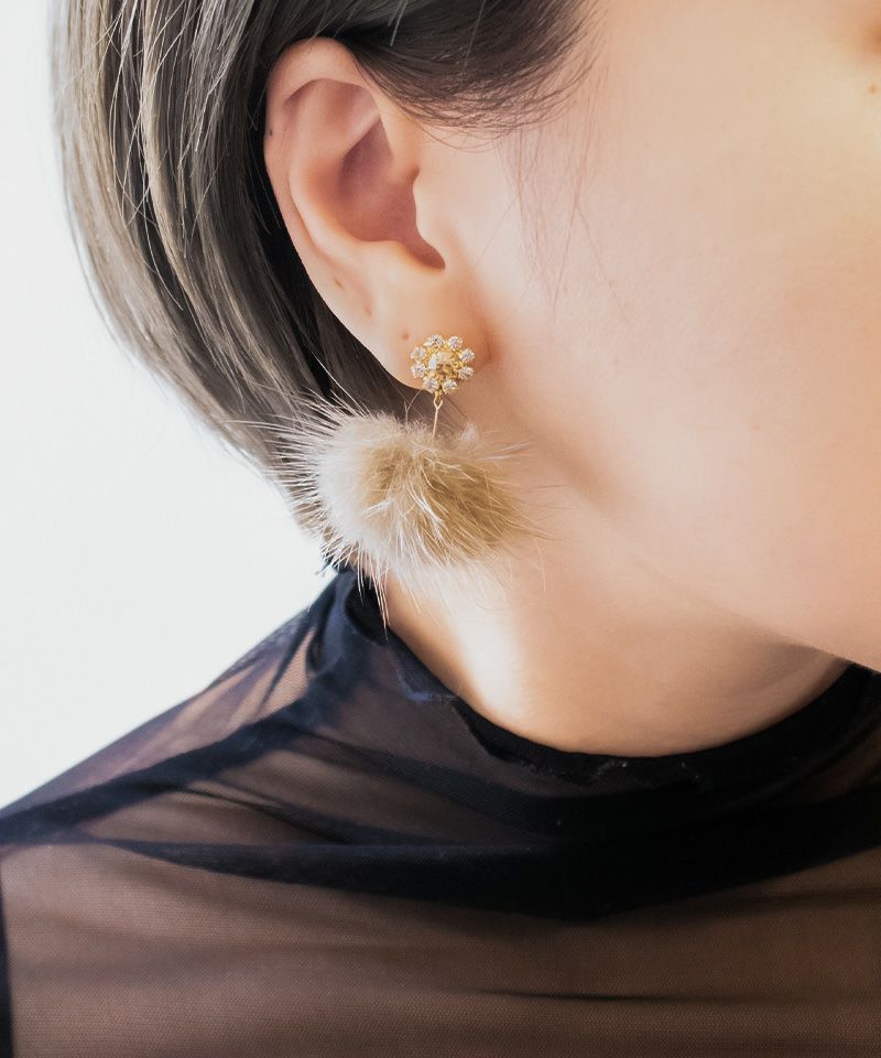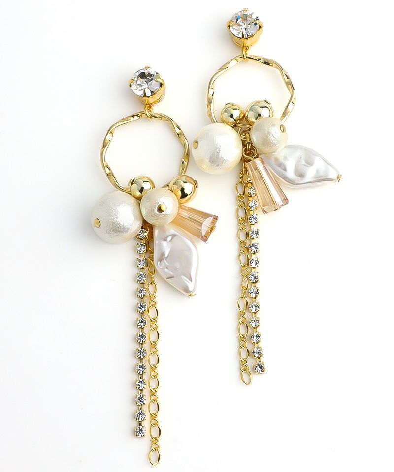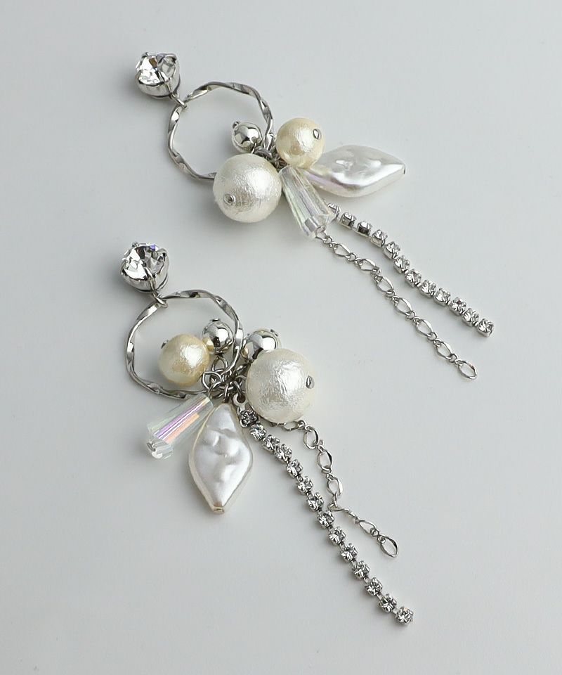 たっぷりコットンパール×ニュアンスメタルフープ