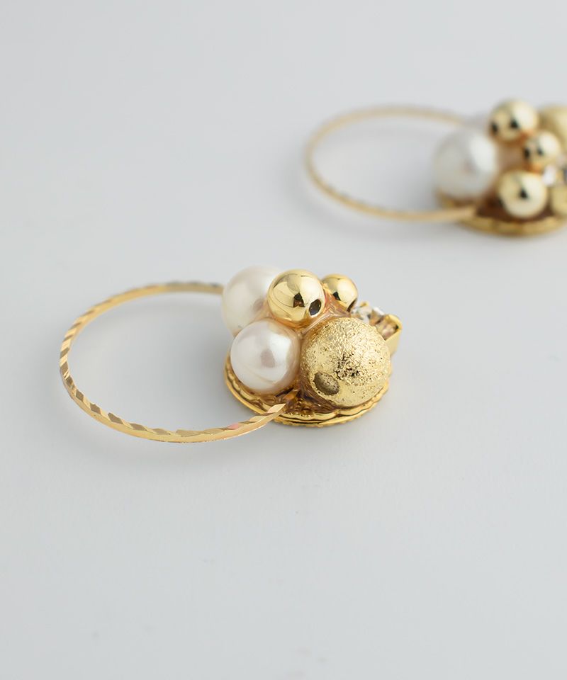パールビジュー×カラーストーンクリアフープ