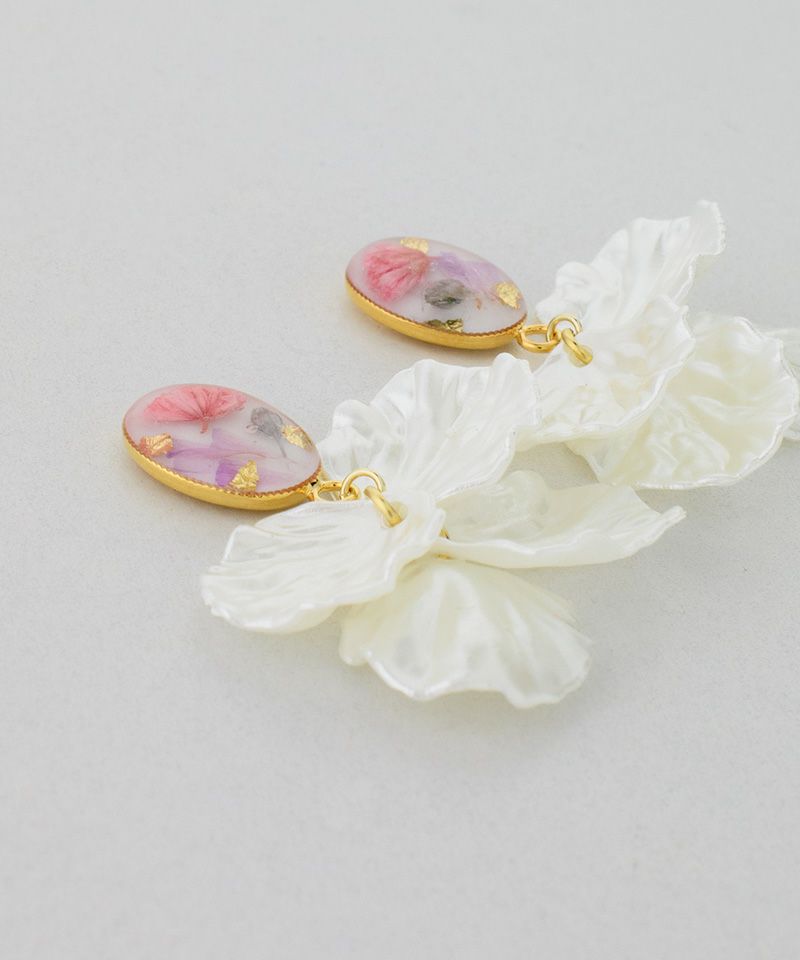 ドライフラワーと淡い花びらの組み合わせが上品な可愛さに。
