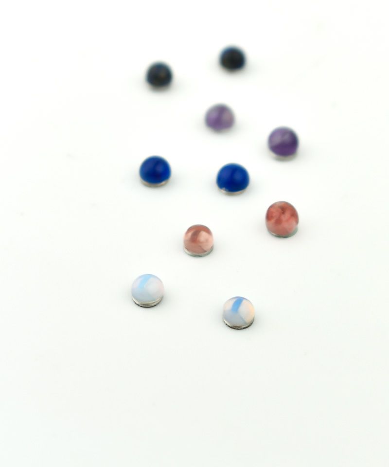 誕生石のカイヤナイトを購入しました。サイズはとても小ぶりなので、トラガスにつけるとちょうどいいかと思います。 丸っこいフォルムなもので、マスクとかに引っ掛かるとぽろっといきそうなのが少し怖いですが……