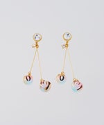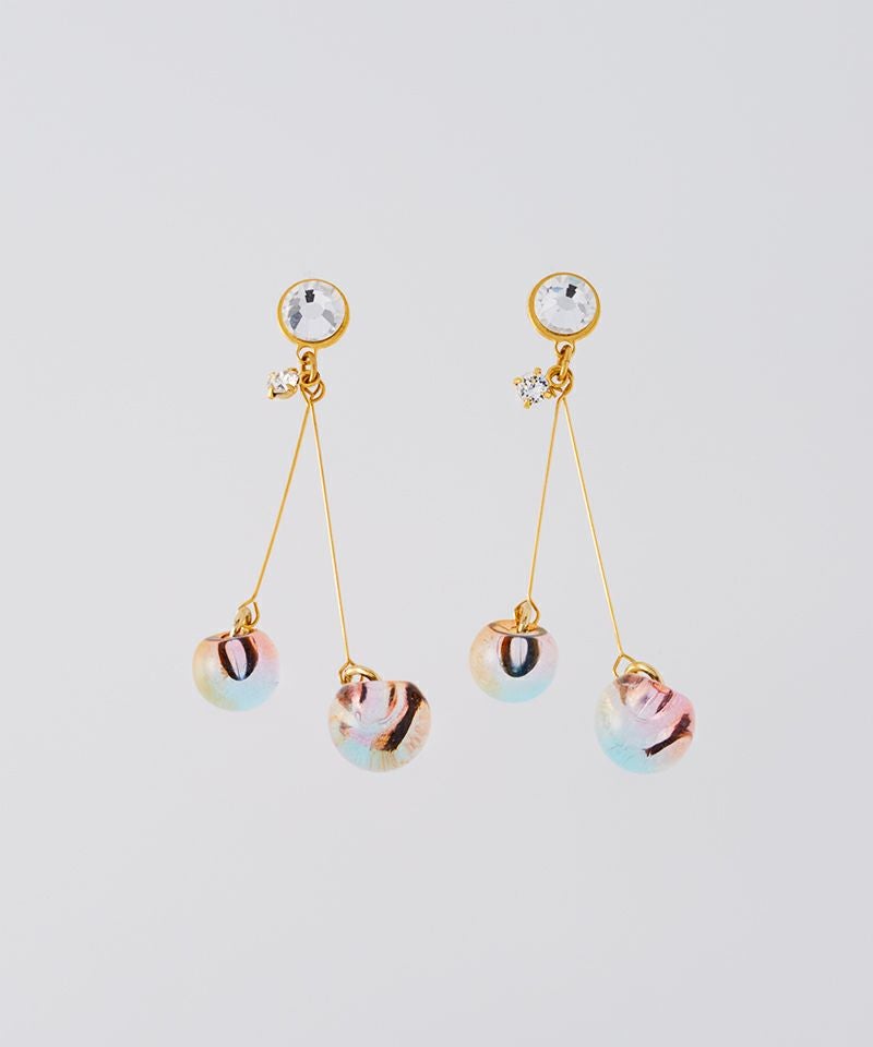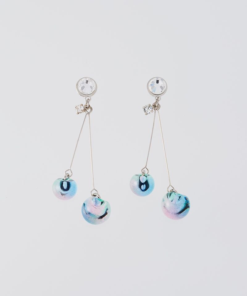 透明なブルーにわずかにピンクかパープルが入っているビーズが揺れて爽やかなピアスです。 夏に活躍すると思います!