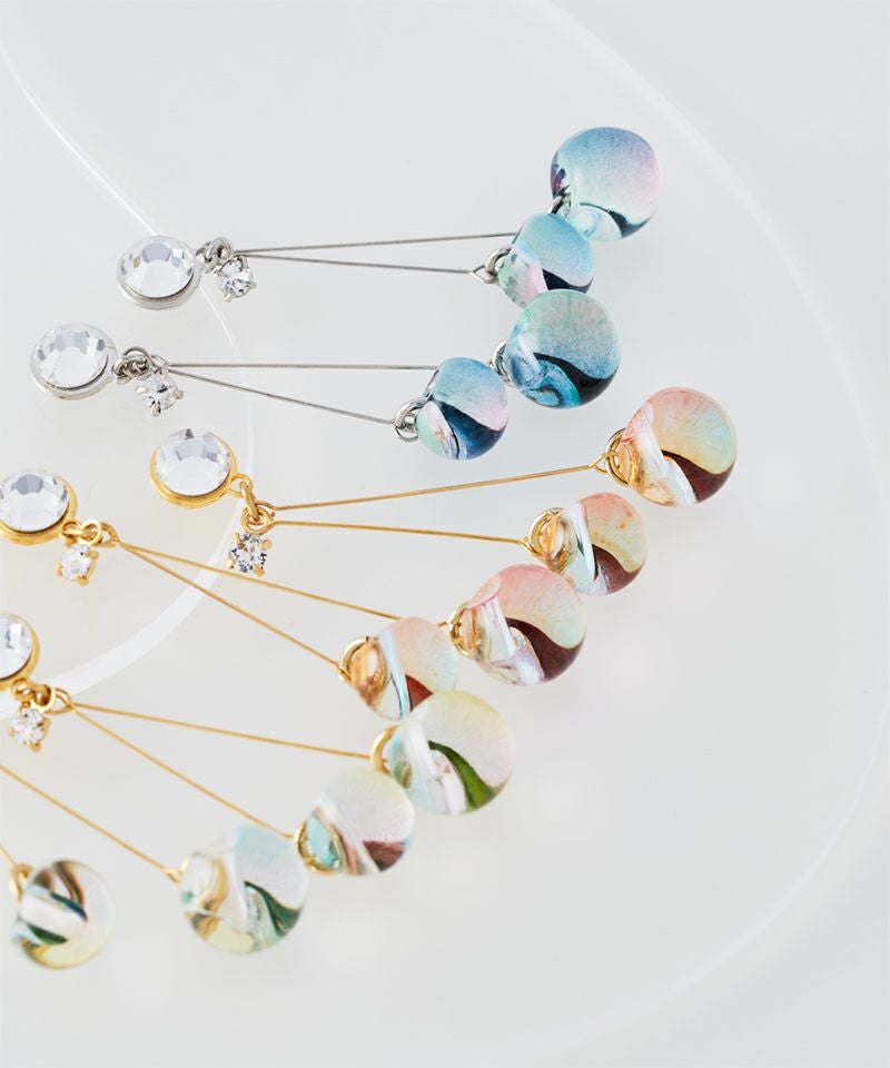キラキラ光る水滴のようなビーズが揺れて女性らしいシルエットを演出します。