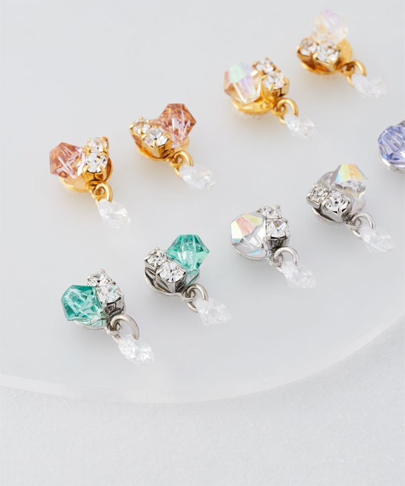 小さいカラービジューにジルコニアストーンが揺れるアイテム☆