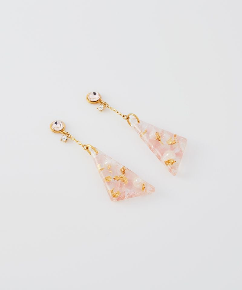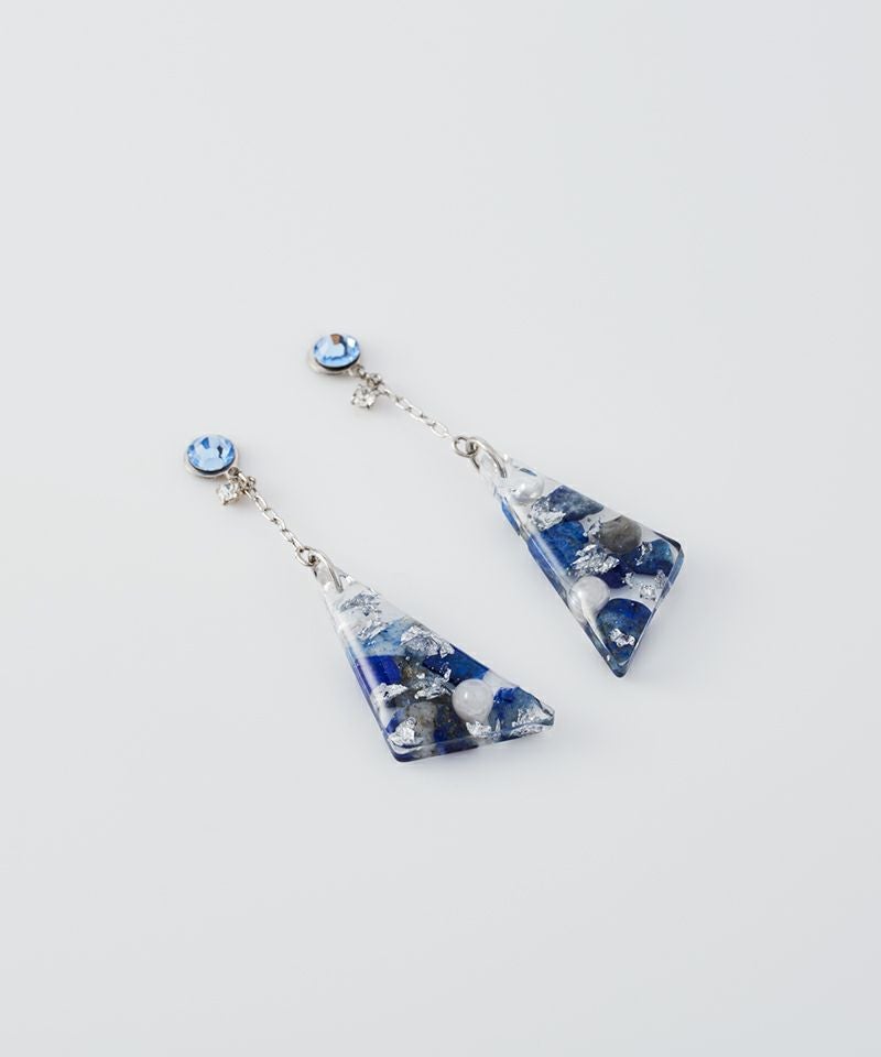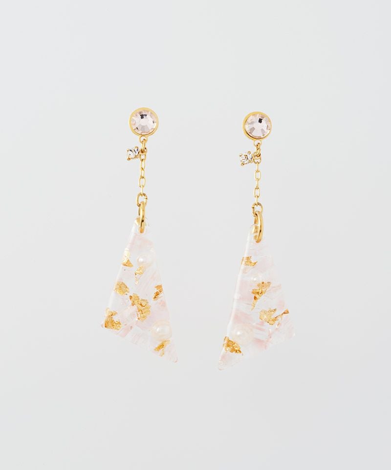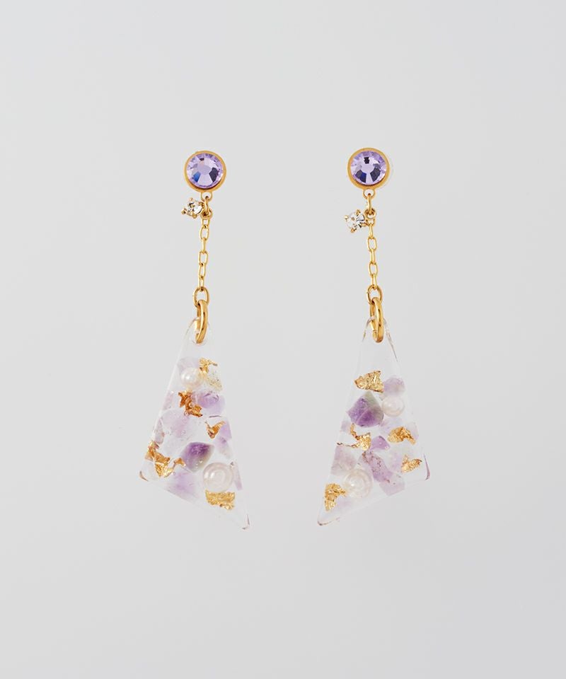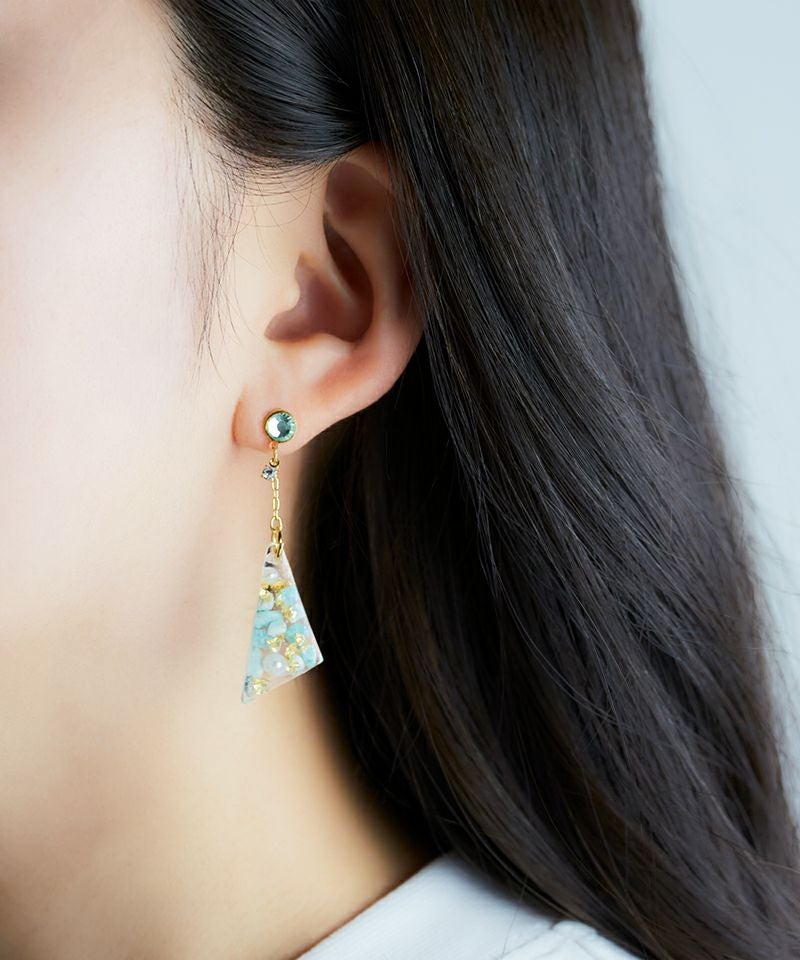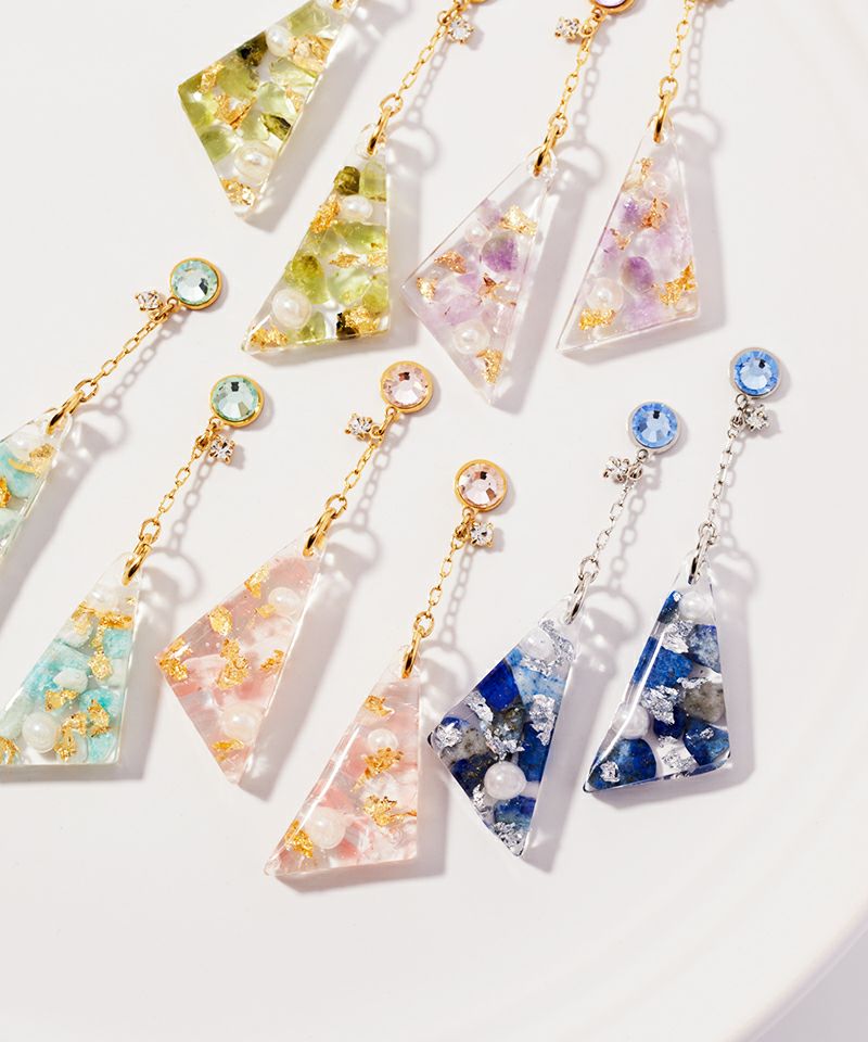 天然石のきらめきを閉じ込めた、三角ドロップピアス。