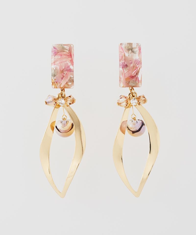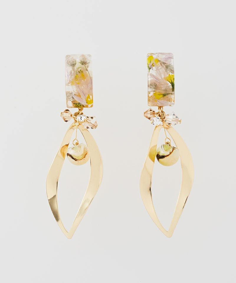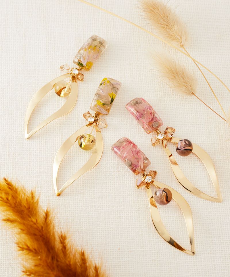 透明感のあるレジンのスクエアトップに、可憐なドライフラワーをぎゅっと閉じ込めました♪