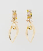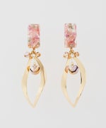 下にはリーフ型のフープとクリアビーズが揺れ、まるで小さなお庭を耳元にまとっているようです。