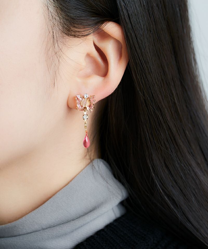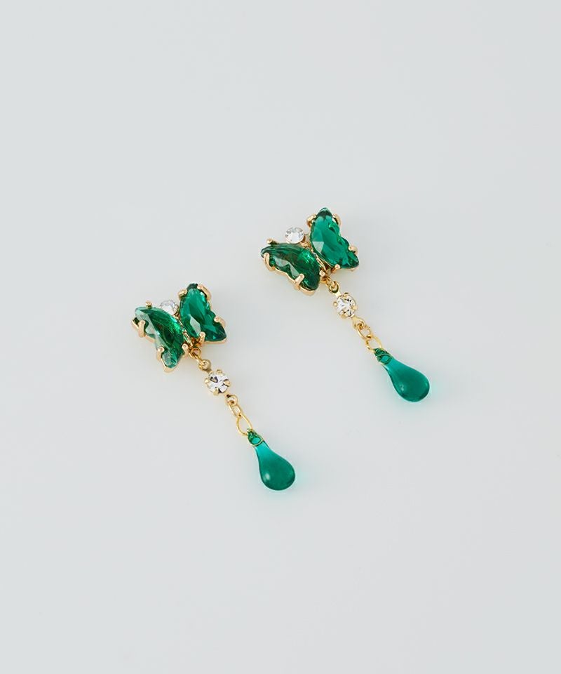 バタフライ型のストーンが光を受けてきらめき、耳元を上品かつ華やかに演出します♪