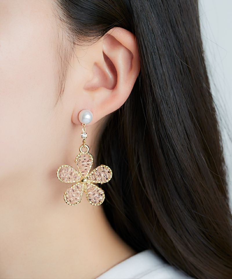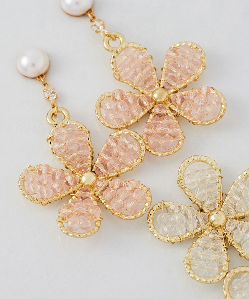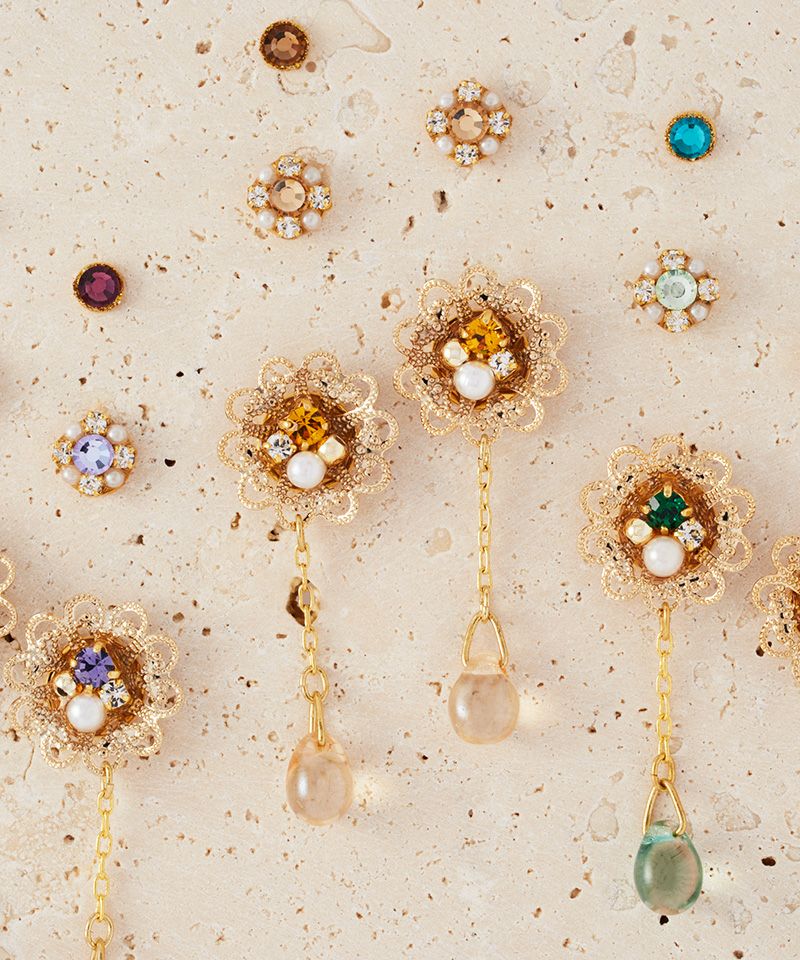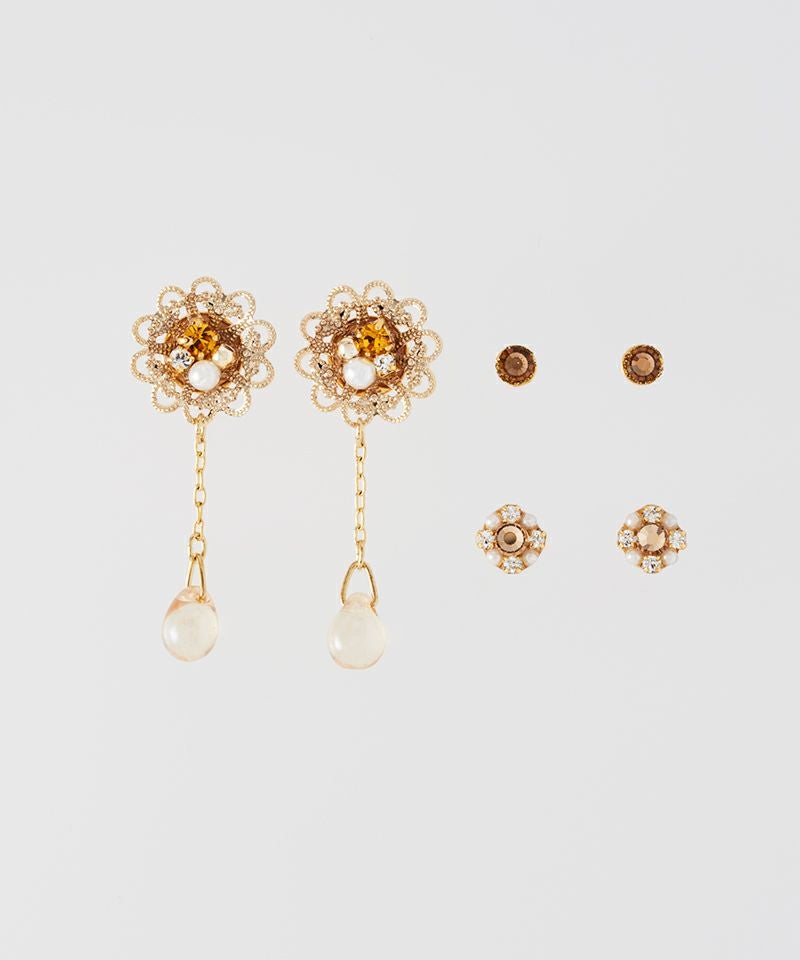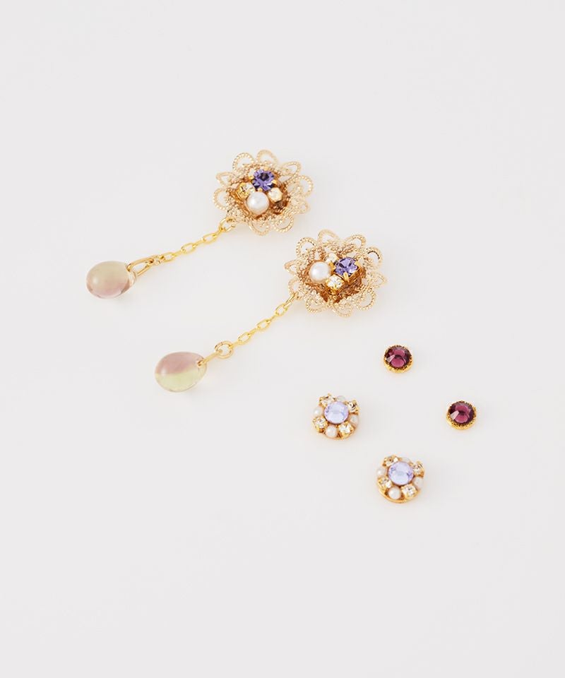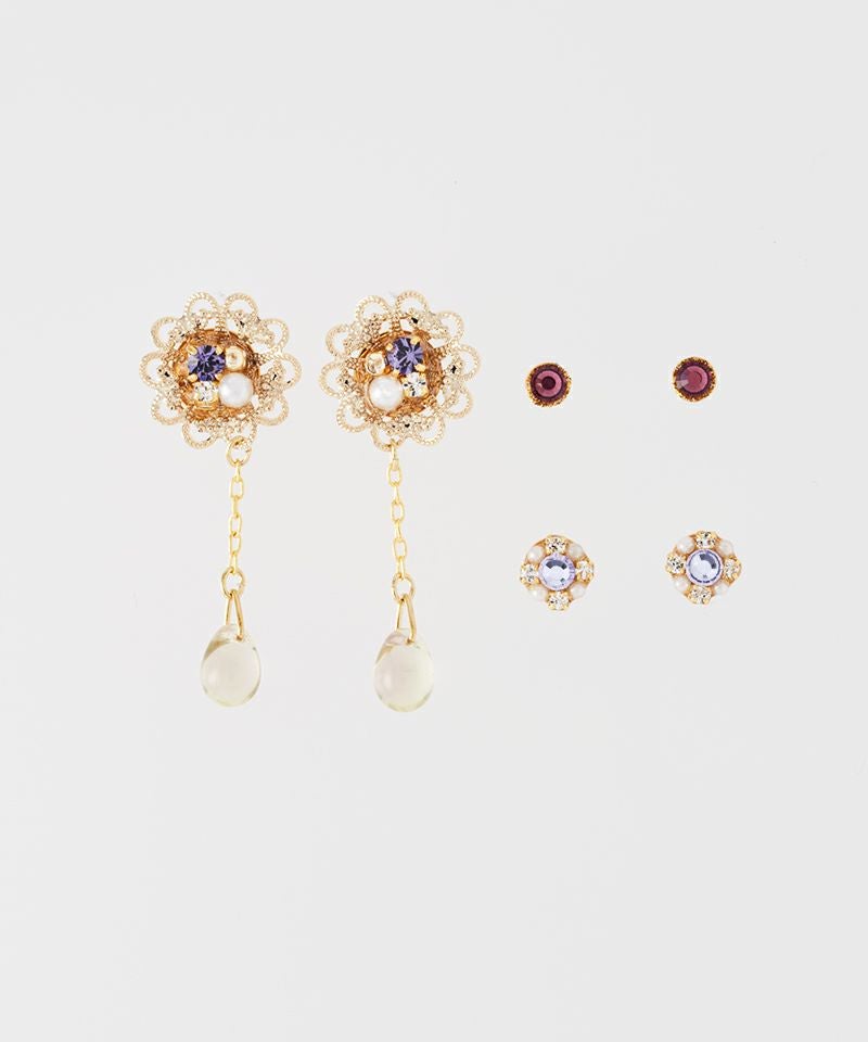 【キュービックジルコニア】光をまとう花の雫ピアス3点セット