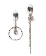 綺麗なクリスタルチャームに、フープとチェーン…盛りだくさんなアシメピアスです。 ポスト部分もとっても貼りやすく使い勝手良いですよ。