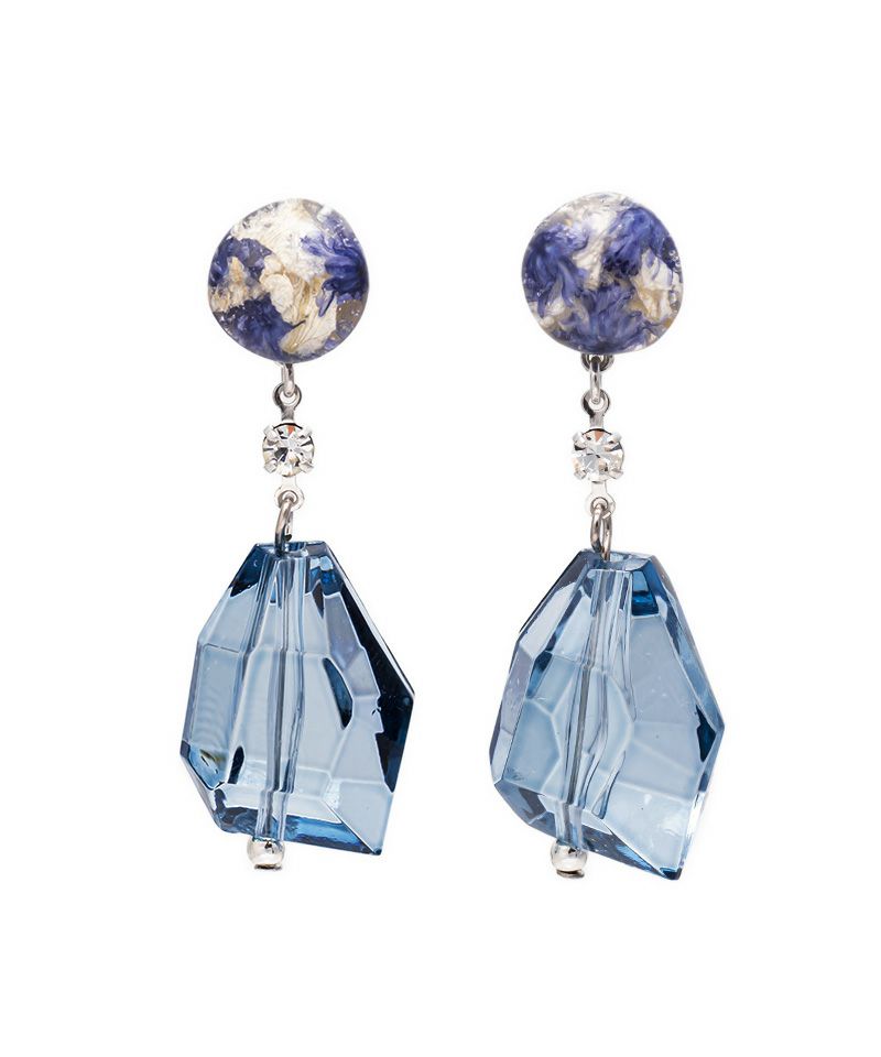 耳元のお花のレジンも揺れるクリアパーツもとっても可愛いです。 色目はグレーにしたので、少し大人っぽい雰囲気した。
