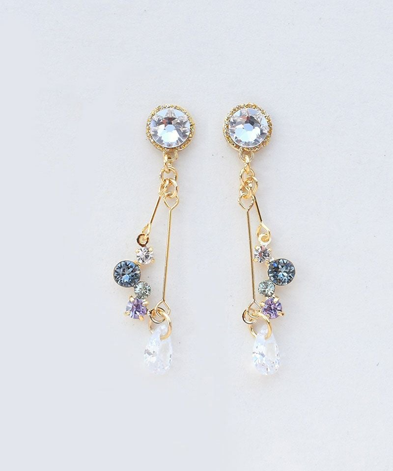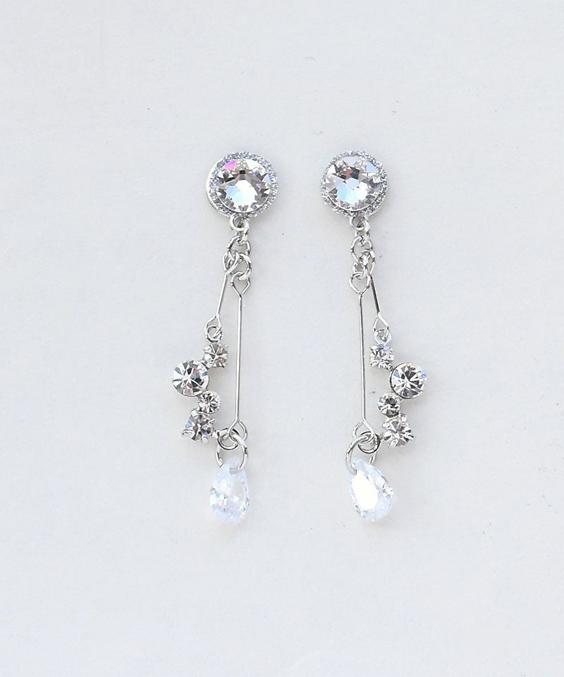 【ノンニッケル】連なる4粒ストーンとドロップクリスタル