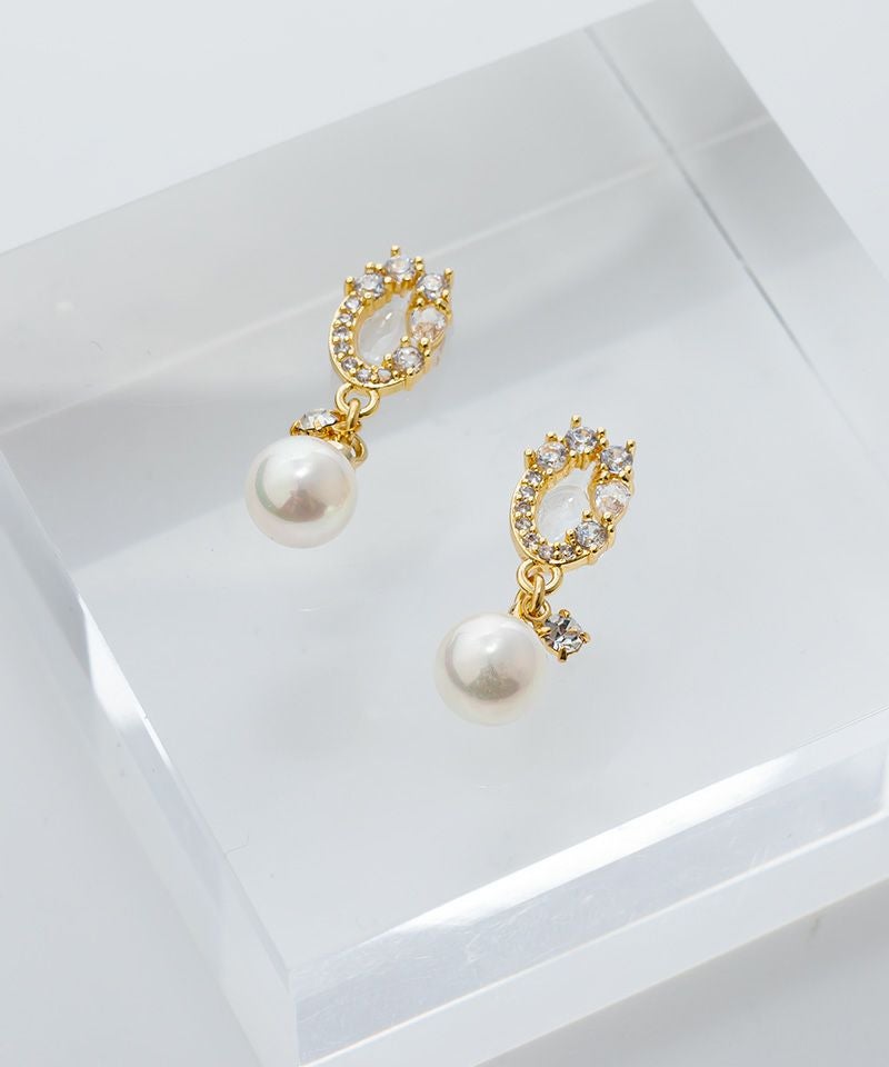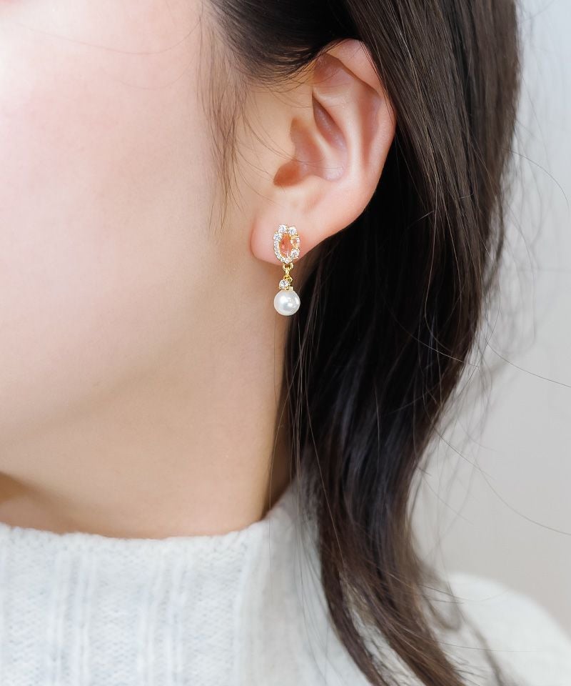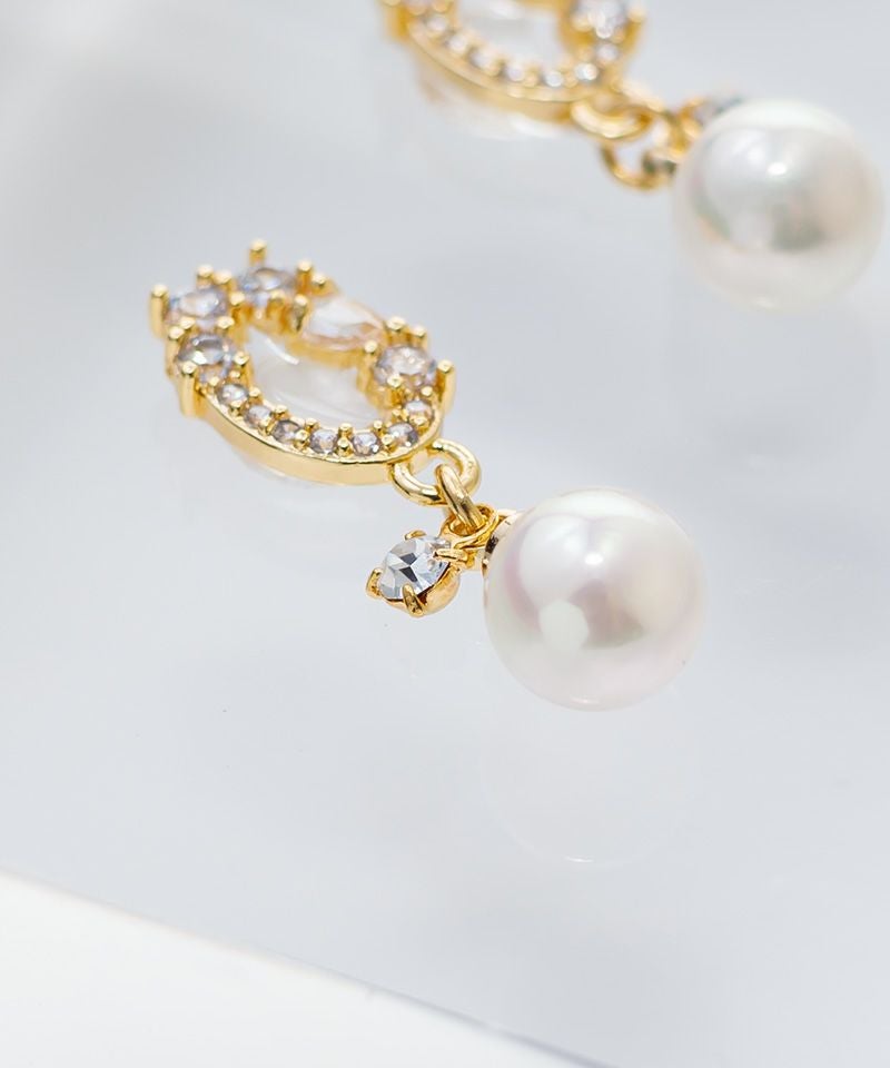 【キュービックジルコニア】O型ビジューとゆらめきシェルパール