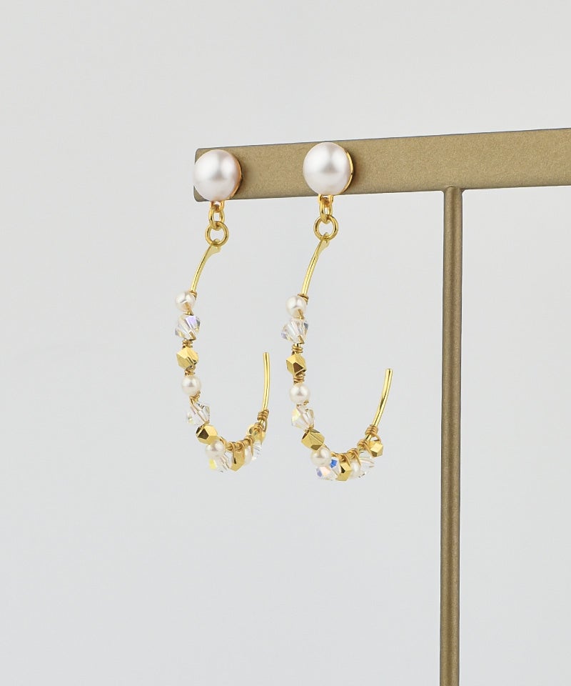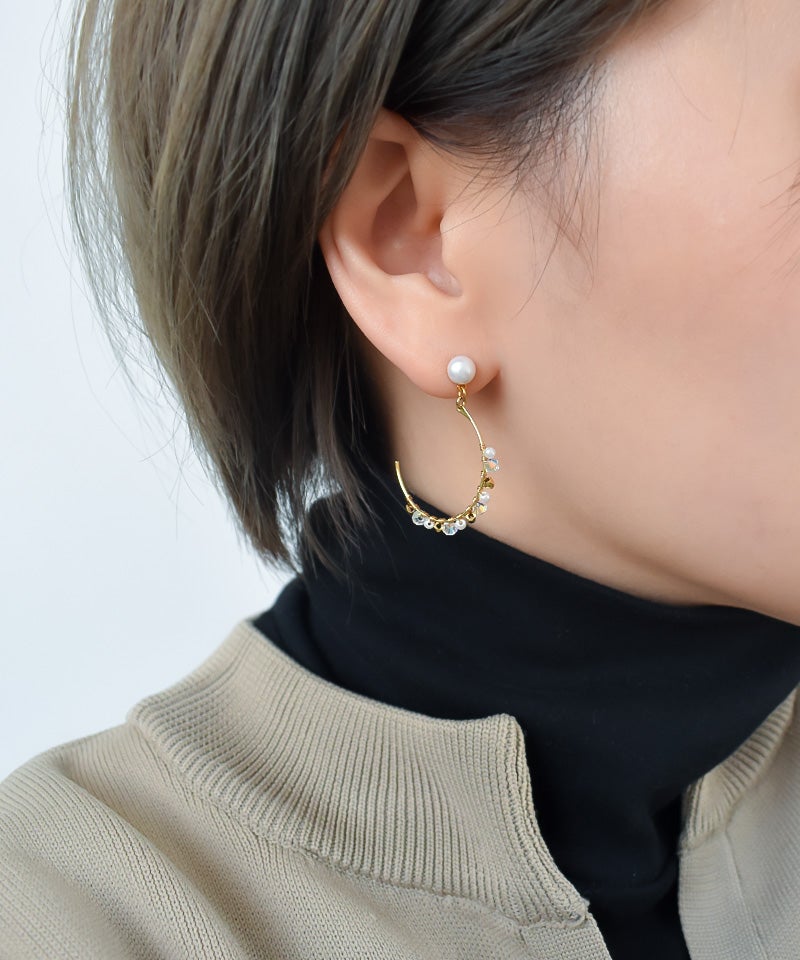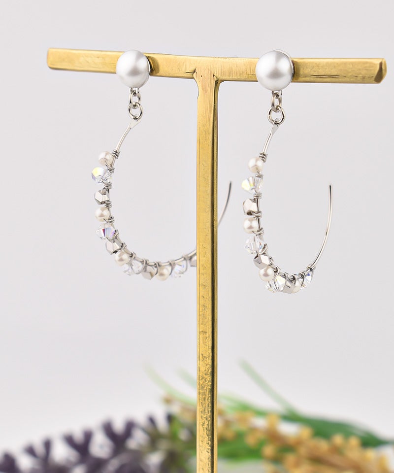 パール・ビーズ・メタルの異なる素材がミックスされていて可愛いも大人っぽいも叶えてくれるデザインです。