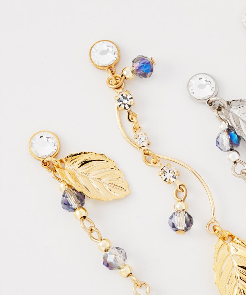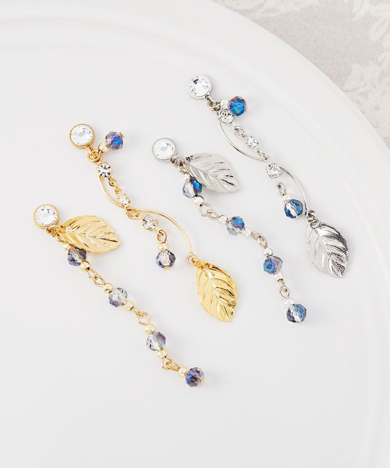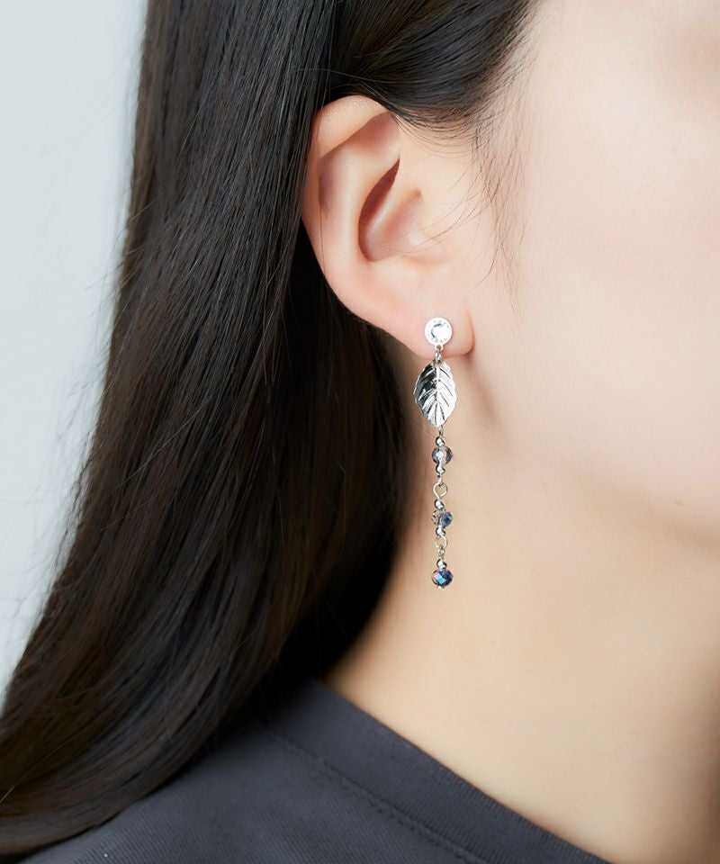 動くたびに揺れるブルーのクリスタルが、夜空の星のように耳元を華やかに彩ります。