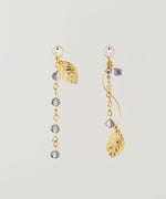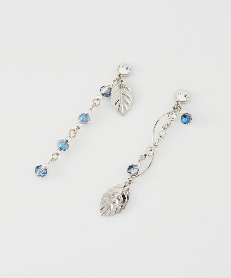 シンプルで上品なピアス。 葉っぱのチャームが絶妙なアシメの素敵なピアスです、