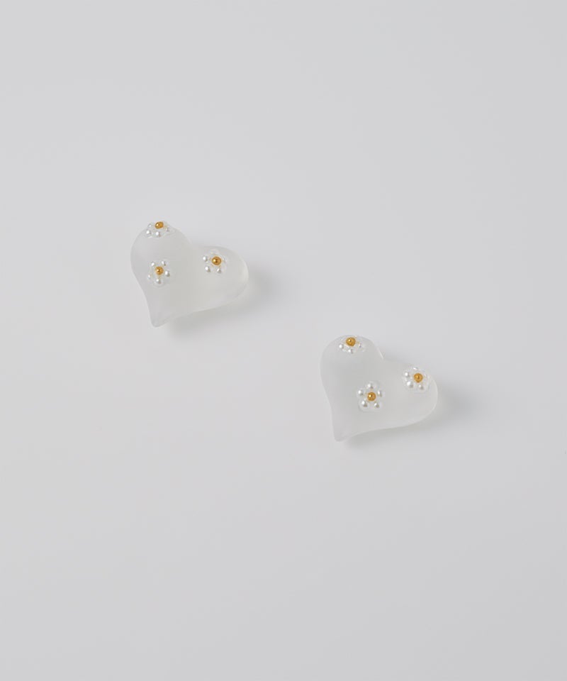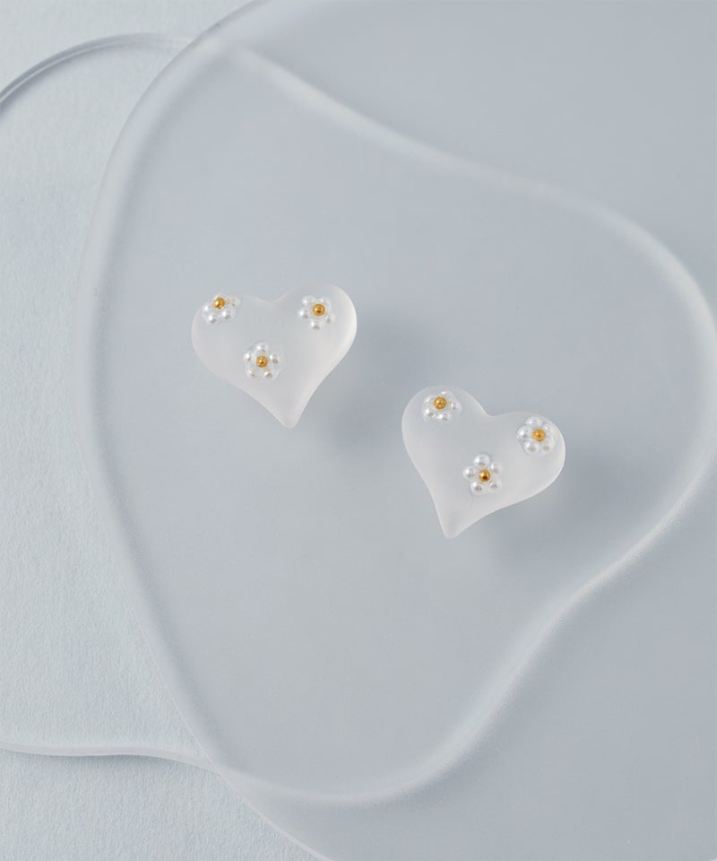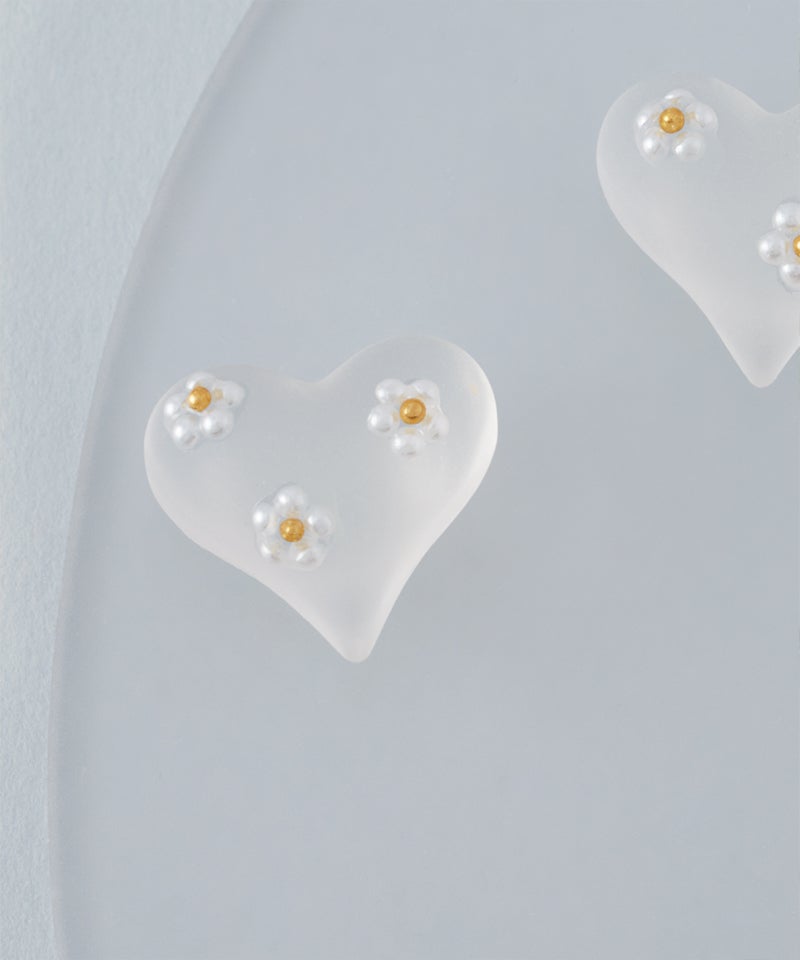 半透明のハートモチーフに、小さなデイジーフラワーをあしらった上品で愛らしいデザイン。