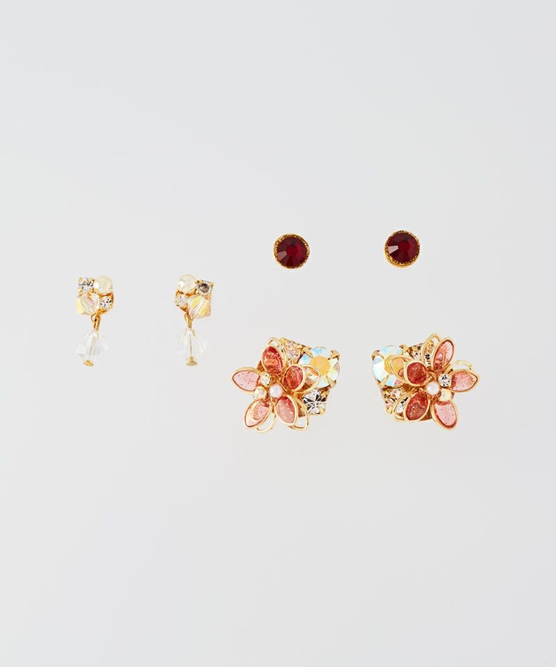 フラワービジュー輝く華やかピアス3点セット