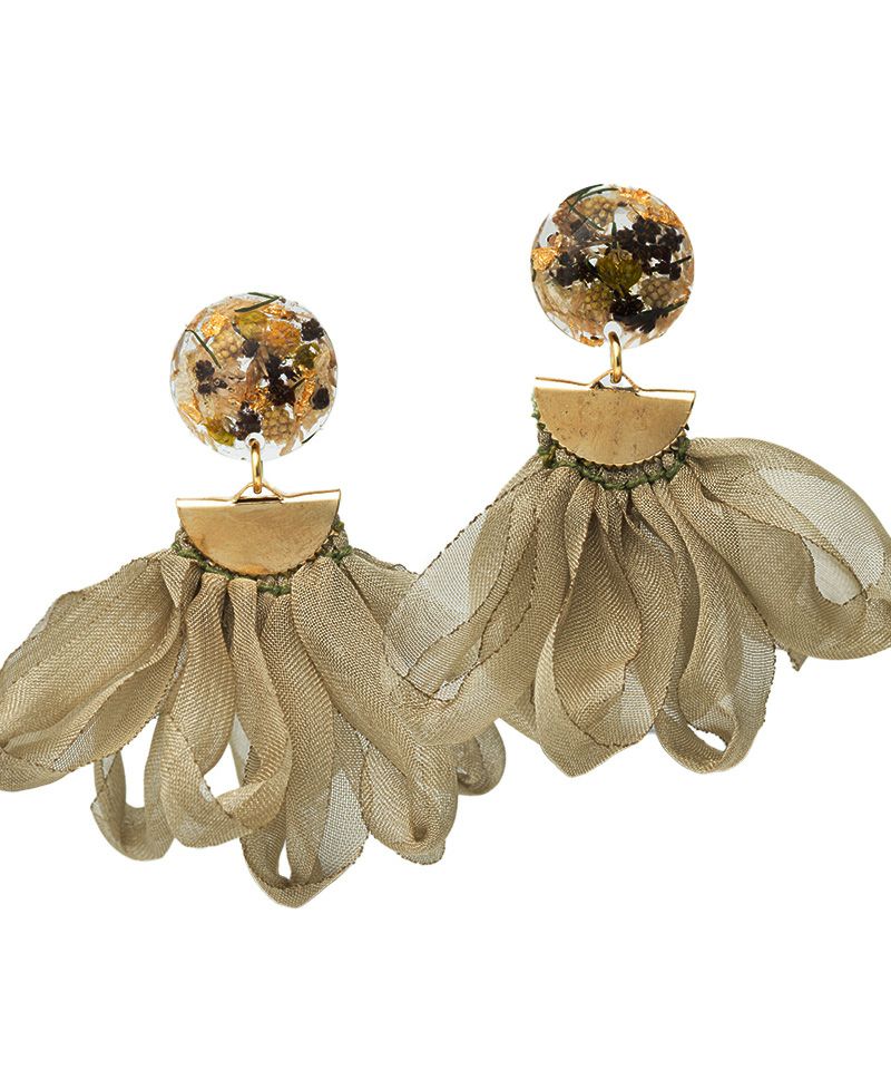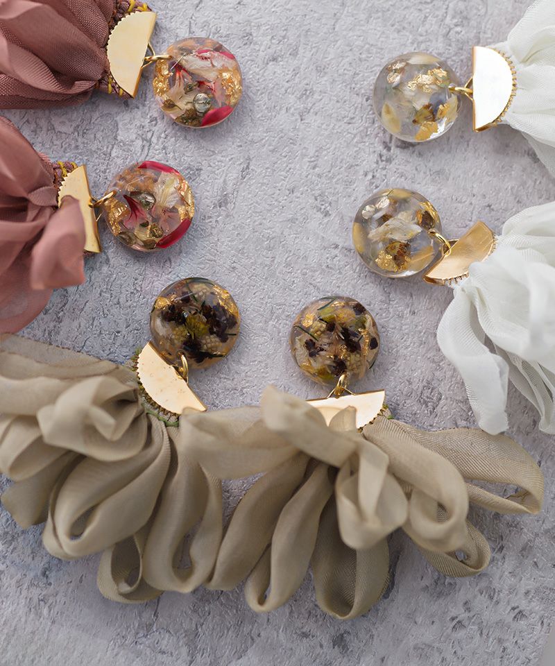 ドライフラワーを詰め込んだトップに、オータムカラーのフリンジを組み合わせたデザイン!