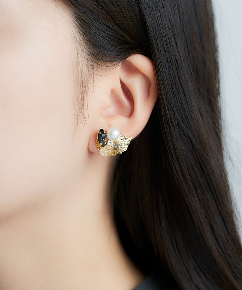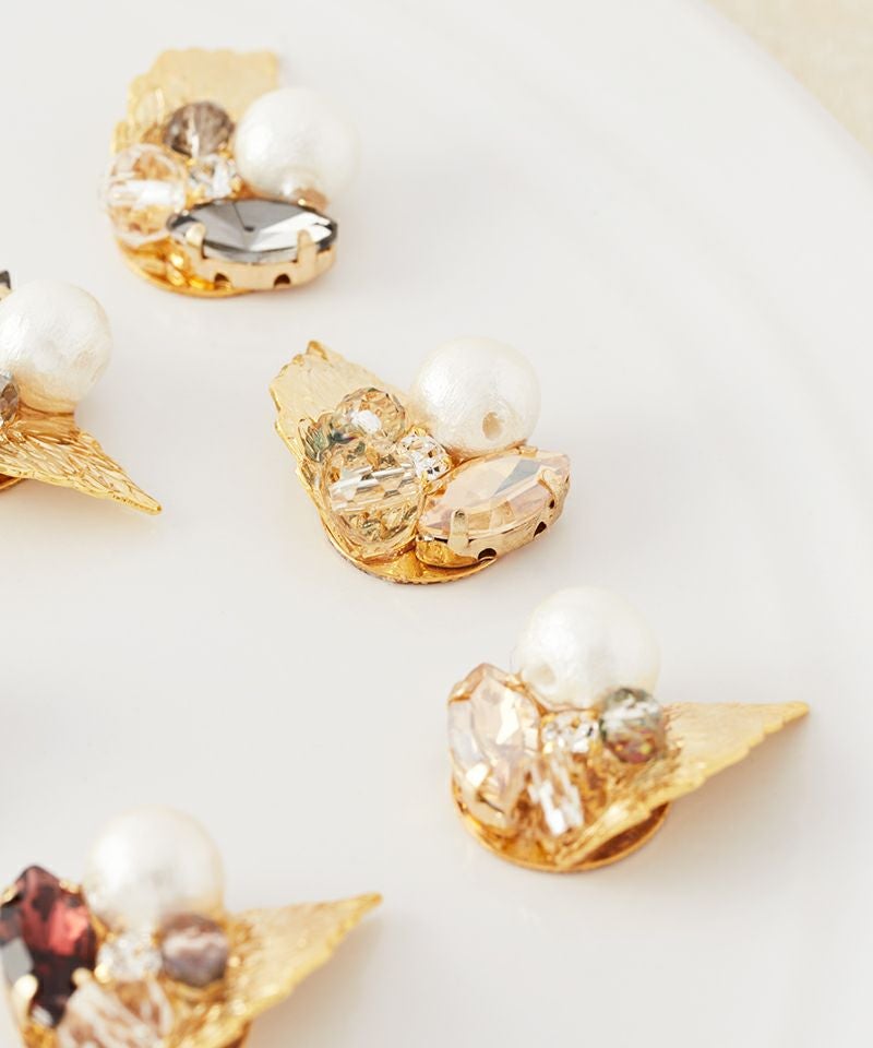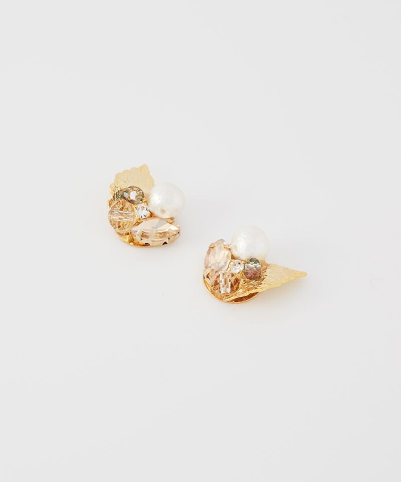 繊細なリーフモチーフにパールやカラーストーン、ビジューをあしらい、耳元に自然な輝きをプラスします。