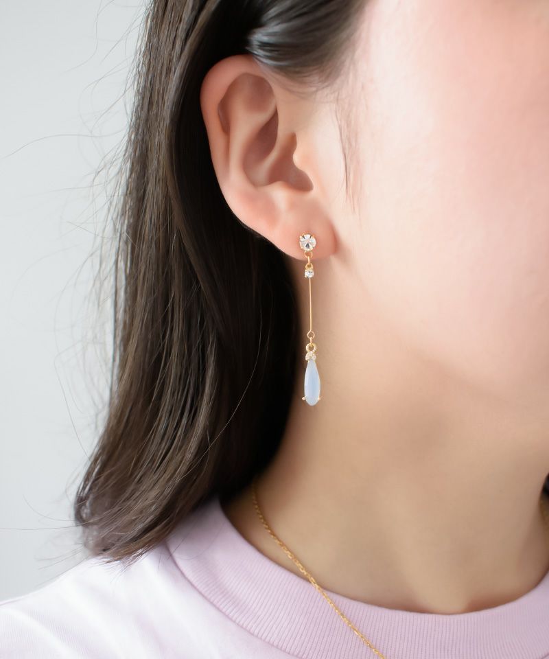 華奢でスタイリッシュなピアスで、石のカラーも淡い色合いが可愛いです。
