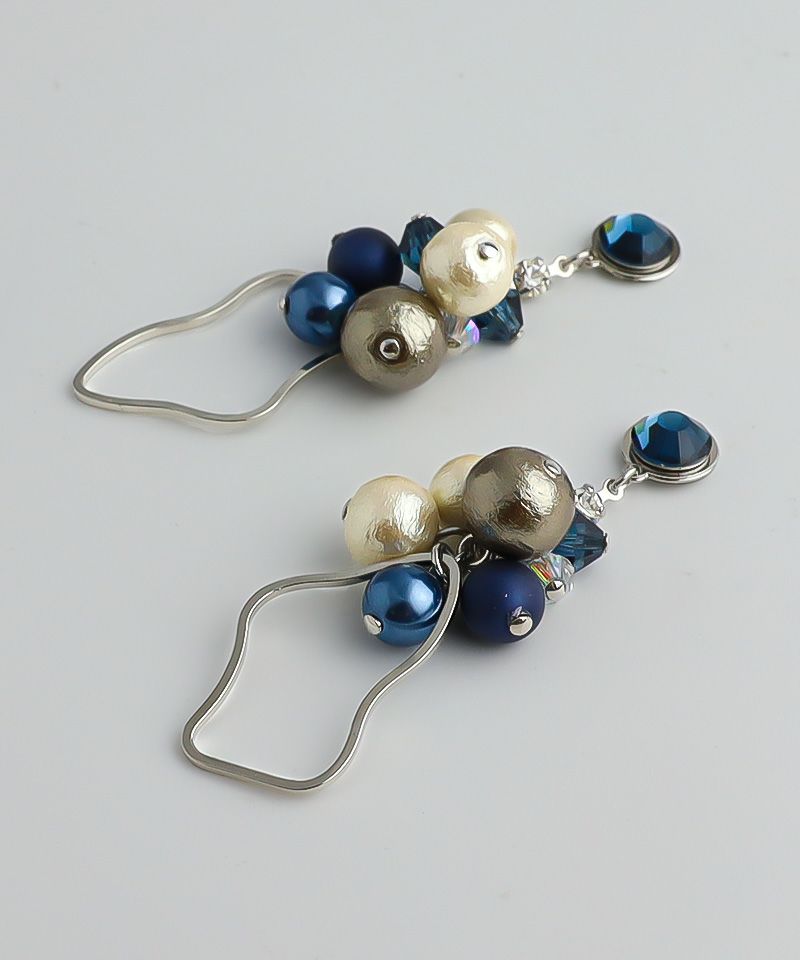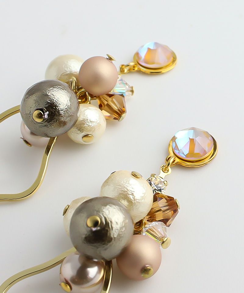 たっぷりコットンパール×ニュアンスメタルフープ