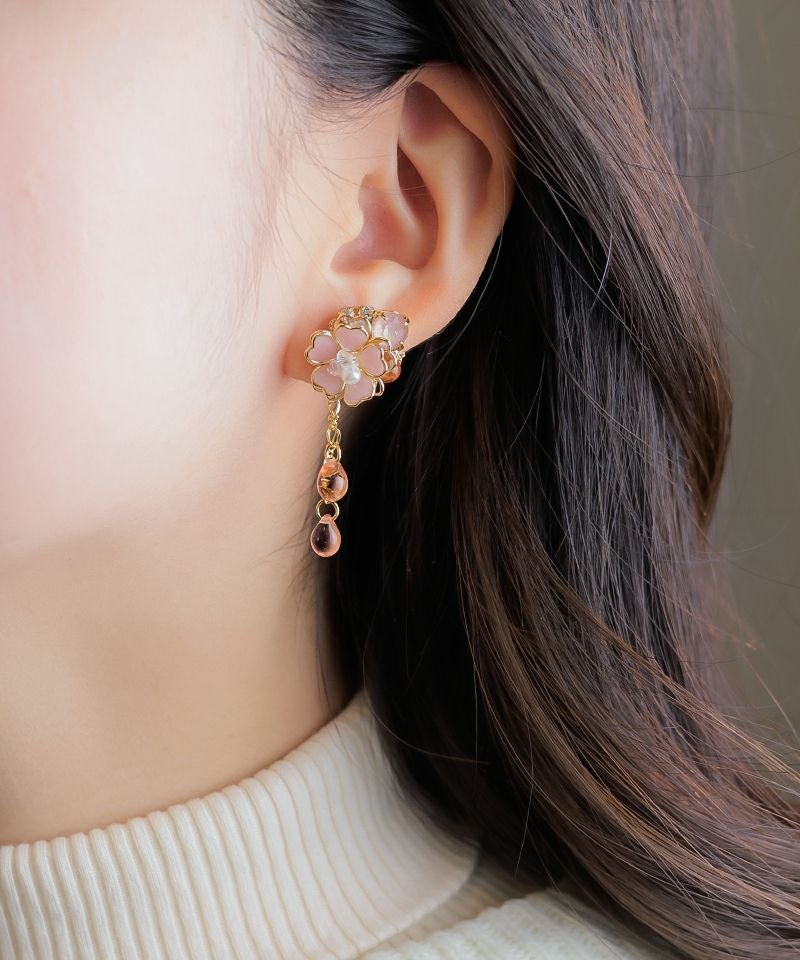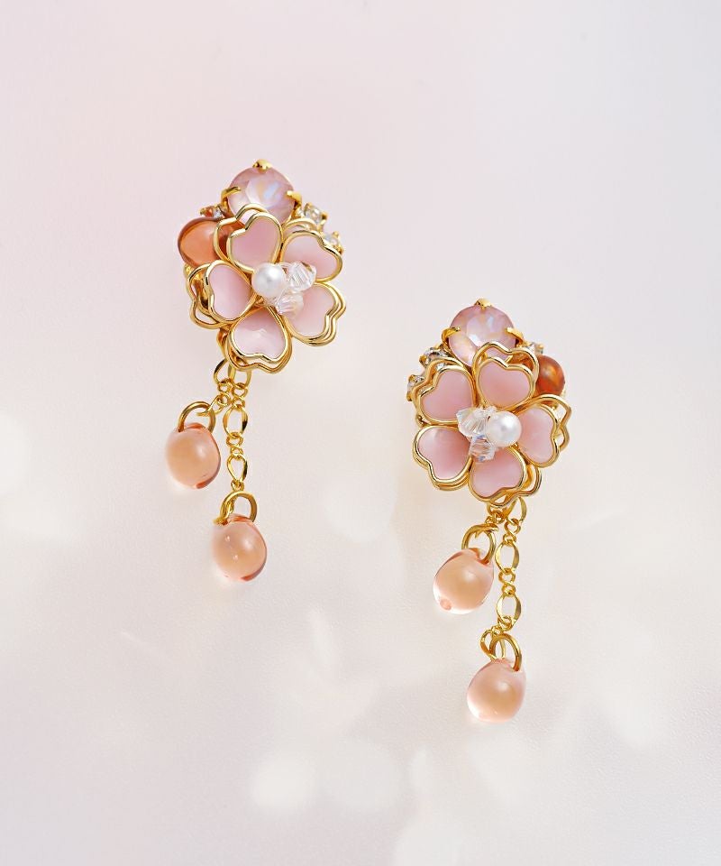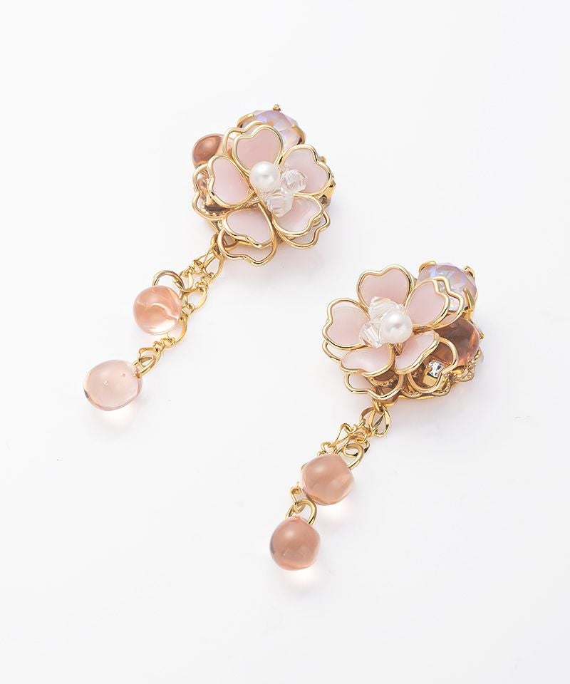 美しいワイヤーフラワーの桜ビジューに雨粒ストーンが揺れる春情緒溢れるアイテム☆