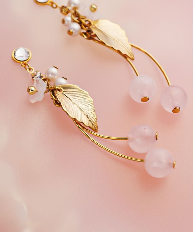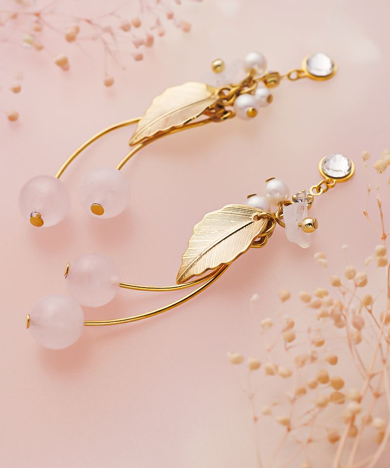 ローズクォーツが華やかでとても可愛いです。リーフのチャームが高級感あって、大人っぽい感じでとても気に入っています。