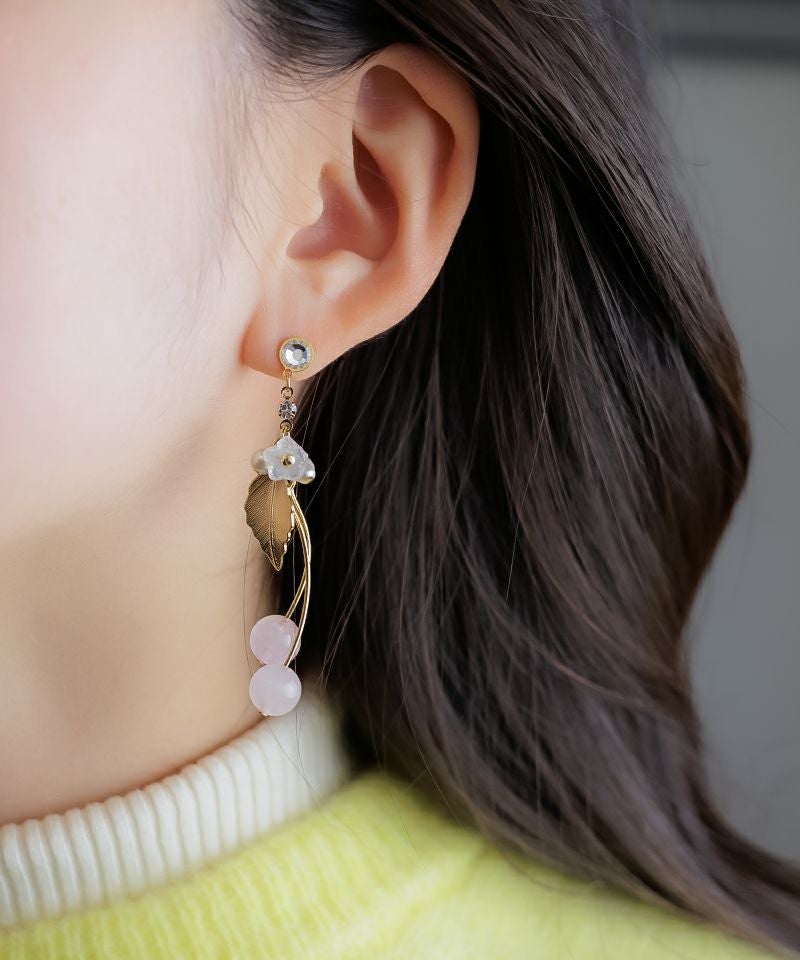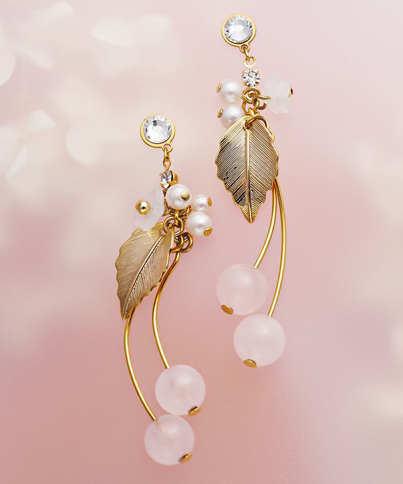 実の部分に使用している天然石【ローズクォーツ】は愛と美の象徴としても知られています♪