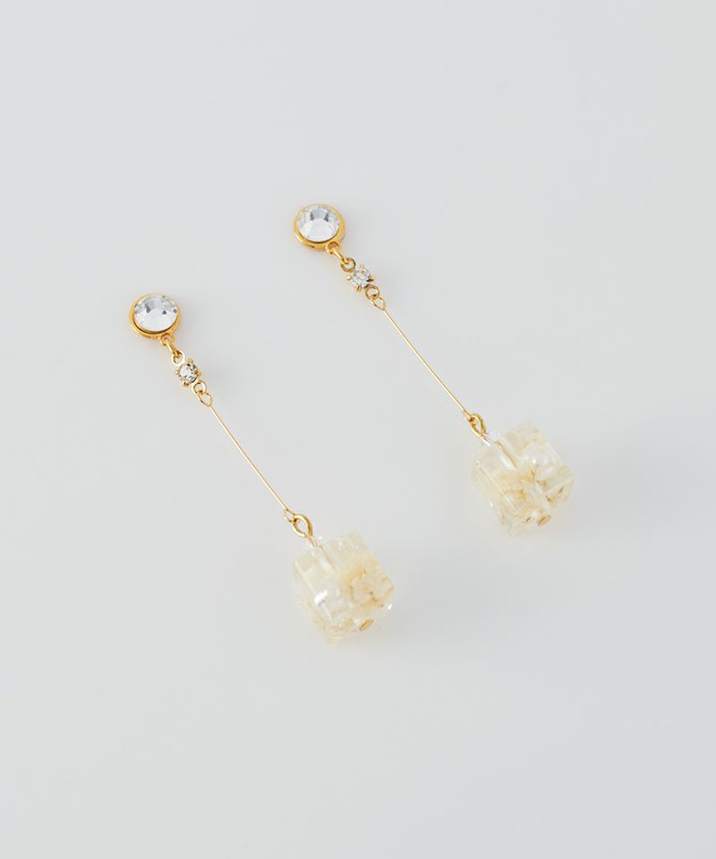 透明感のあるレジンの中にドライフラワーとパールをぎゅっと閉じ込めた小さな「カラフルブーケキューブ」