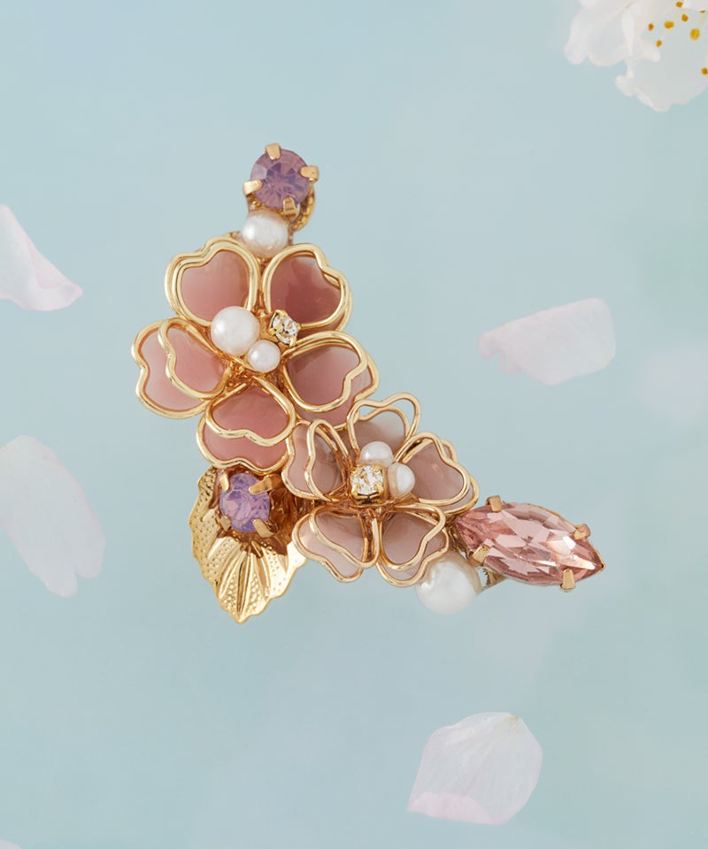 繊細な花びらとビジューのきらめきが調和し、装いに優しい華やぎと奥行きを添えてくれます♪